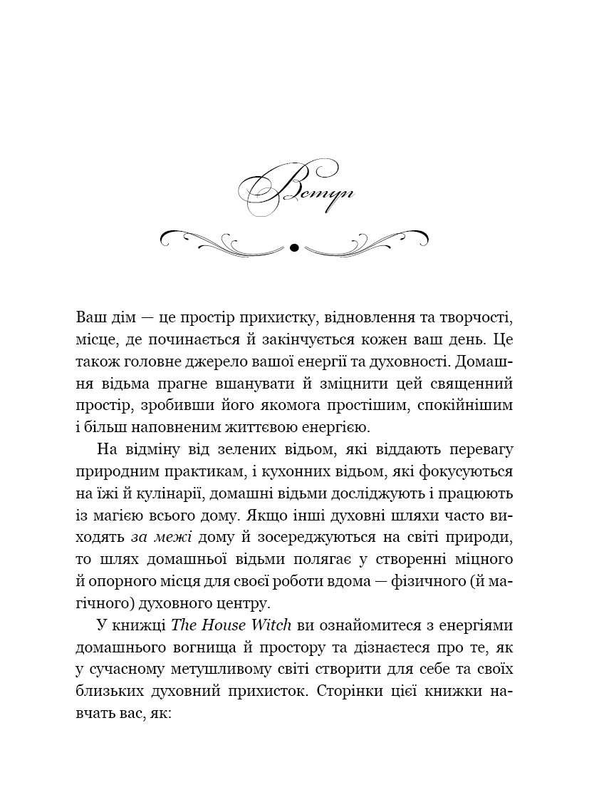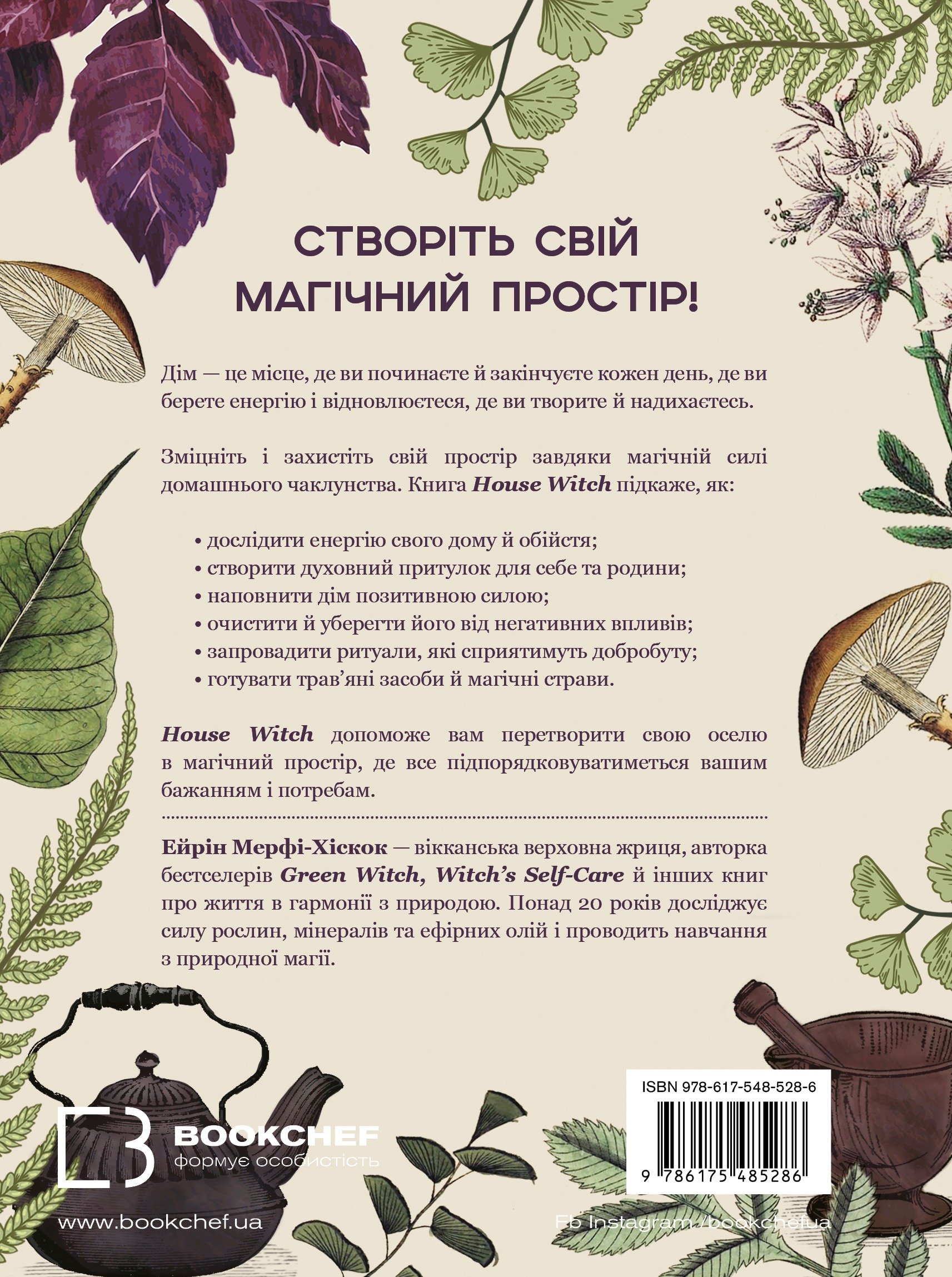 Авторка бестселерів «Green Witch» та «Witch's Self-Care» пропонує ще одну книгу, у якій ви знайдете все, що вам потрібно знати, аби створити власний священний простір — ідеальний для практикування домашньої магії. Ваш дім — важлива частина вас, тому є сенс тісно пов’язати свою магічну практику з місцем, де ви будуєте своє життя. У цій книзі Ейрін Мерфі-Хіскок пропонує багато корисної інформації, яка допоможе працювати й практикувати у власному магічному просторі. Зокрема вона підкаже, як готувати їжу, яка наситить не лише тіло, а й душу, виконувати ритуали, що захистять і очистять дім, закликати кухонних богинь, використовувати магію домашнього вогню та багато іншого.