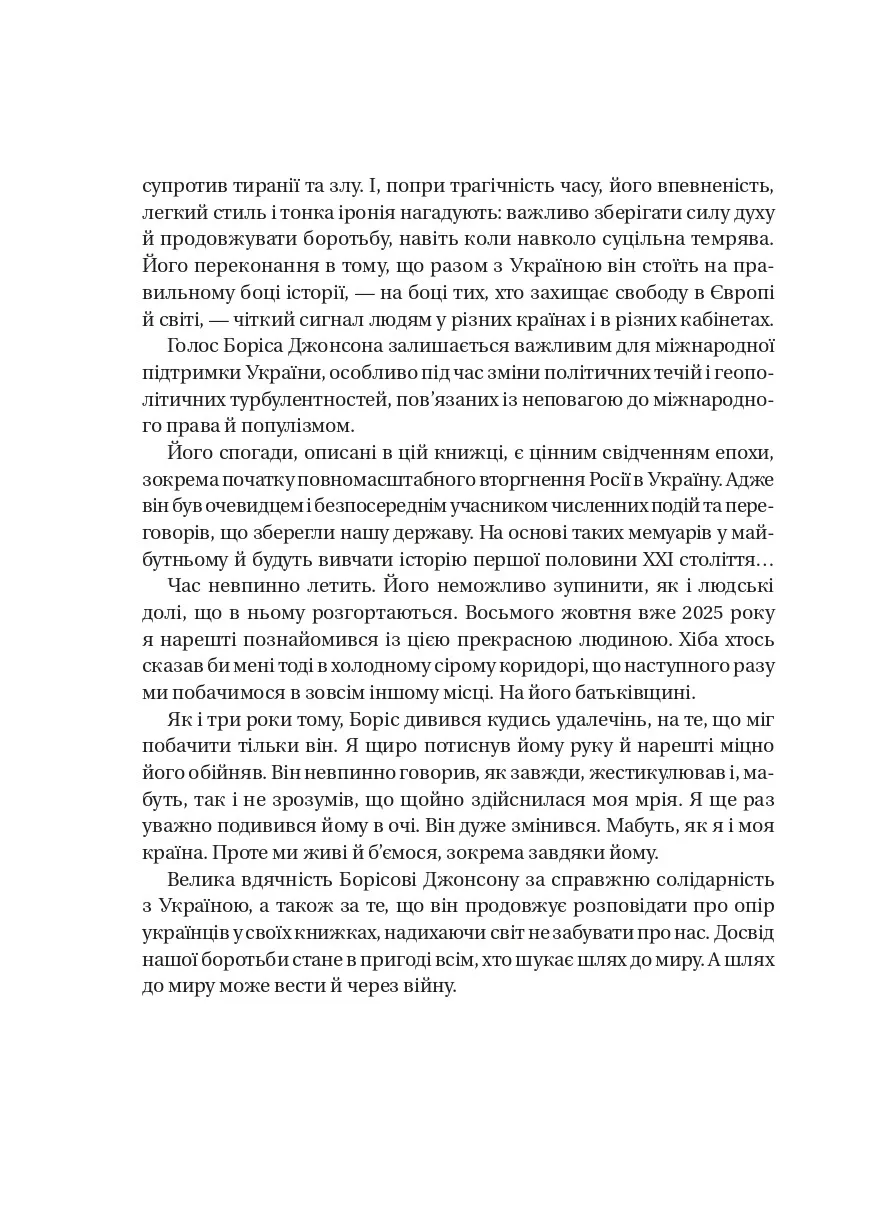 Маючи перед очима політичні мемуари століття, написані постаттю, масштабнішою за вік, ви побачите весь світ таким, яким його побачив депутат парламенту, мер Лондона, міністр закордонних справ і прем’єр-міністр Великої Британії, що його обікрав… Covid. Відтепер гризьке слово Боріса Джонсона, титулованого журналіста, автора десятка книжок, зокрема всесвітньовідомої історичної біографії «Фактор Черчилля», з вами надовго!