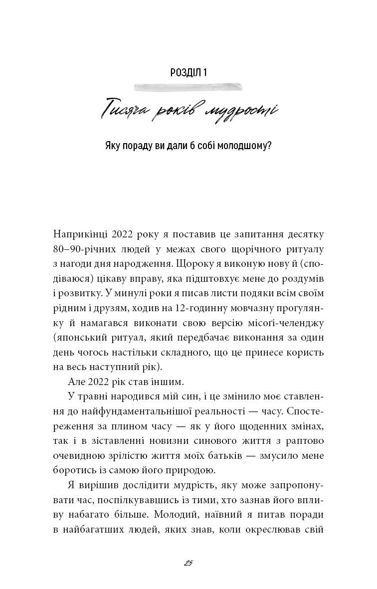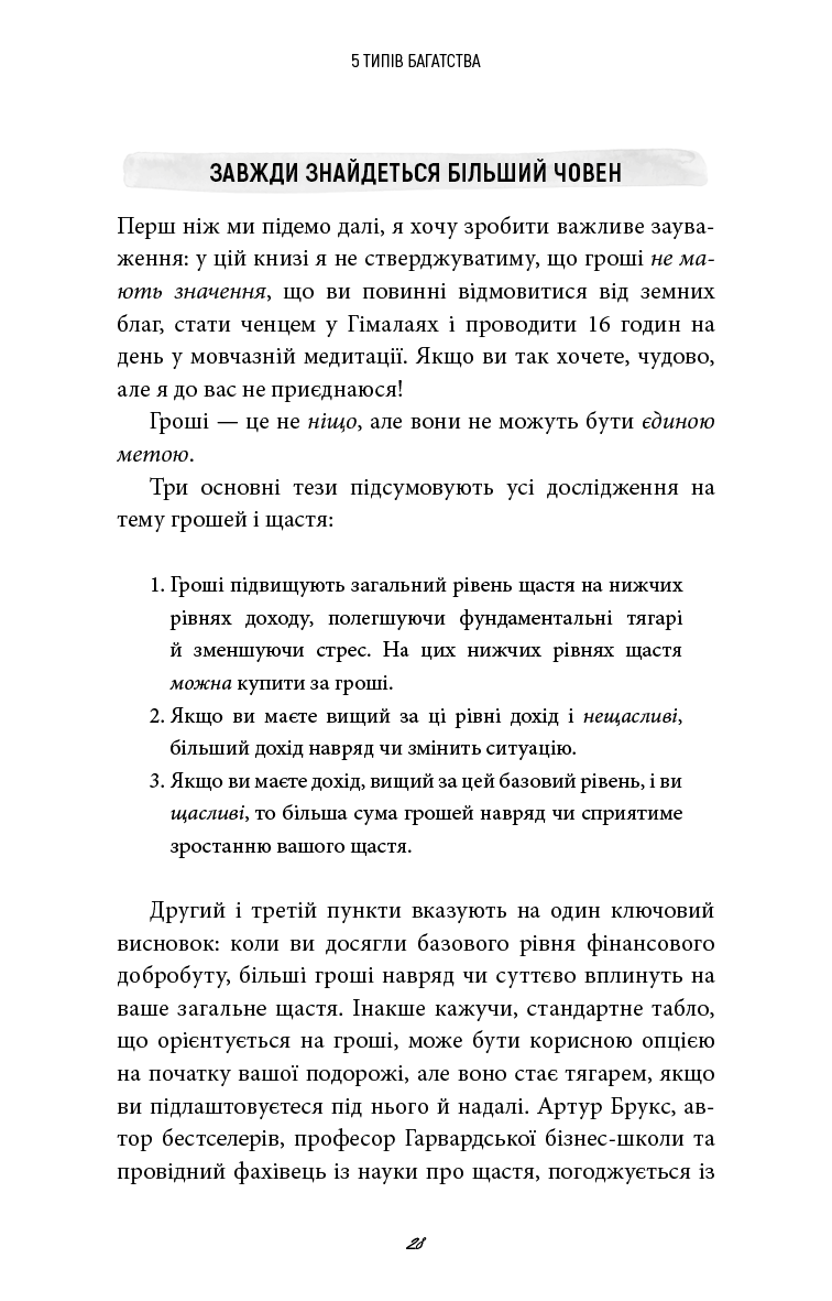 Протягом усього життя вам поступово прищеплювали думку, що гроші — це єдиний тип багатства. Насправді ваше заможне життя може бути пов’язане з грошима, але зрештою його якість визначатиметься іншим. На основі трьох років досліджень, особистих експериментів і тисяч інтерв’ю Сагіл Блум створив новаторський проєкт, який допоможе побудувати життя на основі п’яти типів багатства: багатства часу, соціального багатства, ментального багатства, фізичного багатства та, звісно, фінансового. Життя, сповнене справжнього задоволення, вимагає наявності всіх п’яти типів достатку. Незалежно від того, де ви перебуваєте на своєму життєвому шляху, поради, зібрані в цій книзі, допоможуть вам діяти відповідно до ваших пріоритетів, ухвалювати ліпші рішення й будувати життя, про яке ви завжди мріяли.