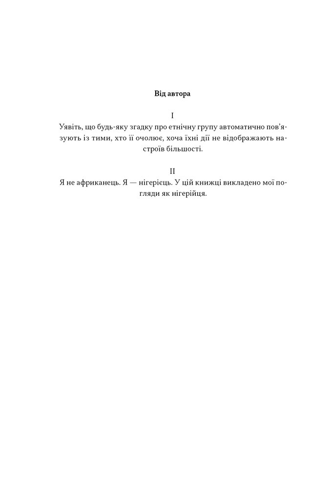 Що спадає нам на думку, коли чуємо слово «Африка»? Бідність. Божевільний диктатор мчить на джипі з мачете в руках. Спека, саванна, сафарі й певна річ, страждання. «Ні», — рішуче заперечує нігерійський журналіст Дíпо Фалóїн. Африка — це щось значно більше.