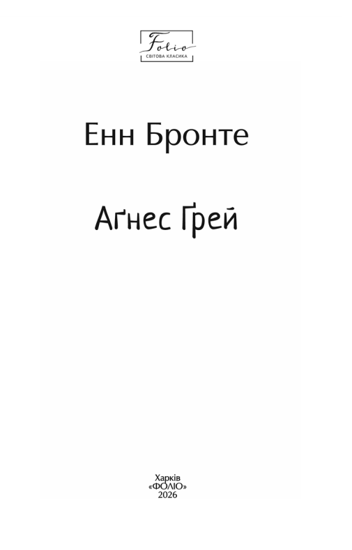 «Аґнес Ґрей» (1847) — дебютний роман письменниці, який значною мірою базується на її власному досвіді. Це історія дочки бідного священника, яка вирішує стати гувернанткою, щоб допомогти своїй родині й утвердити власну незалежність. Але ентузіазм Аґнес швидко згасає, оскільки їй доводиться мати справу з розбещеними дітьми та їхніми жорстокими, пихатими й байдужими до виховання батьками. Кожен день стає для дівчини випробуванням її внутрішньої сили та моральної стійкості. Чи зможе вона зберегти свою гідність у світі, що не визнає її як рівну?