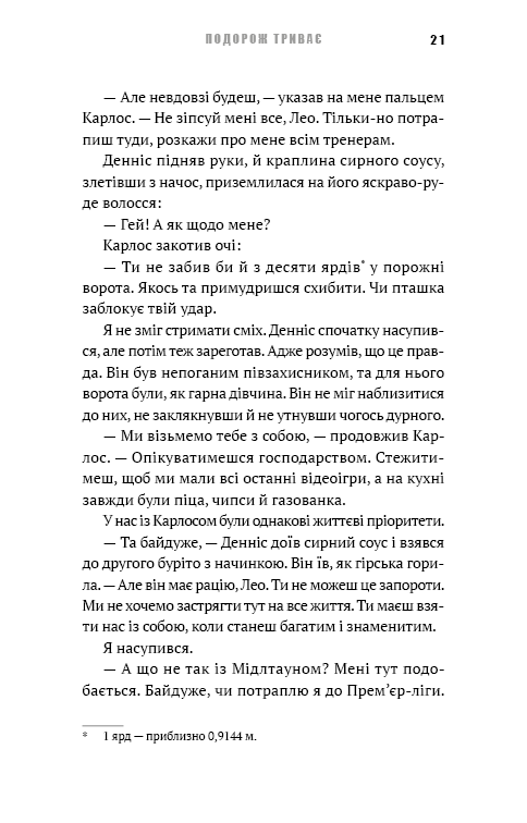 До того ж Лео ще й мусить встигати за шкільною програмою, заводити нових друзів, ладнати з тренером, який, здається, ставиться до нього не дуже прихильно, і витримати важкий сезон у молодіжній Прем’єр-лізі далеко від дому. Лео упевнений, що його талант здатен врятувати команду, але чи зможе він впоратися з усіма цими завданнями і довести свою спроможність на найбільшій арені світу?