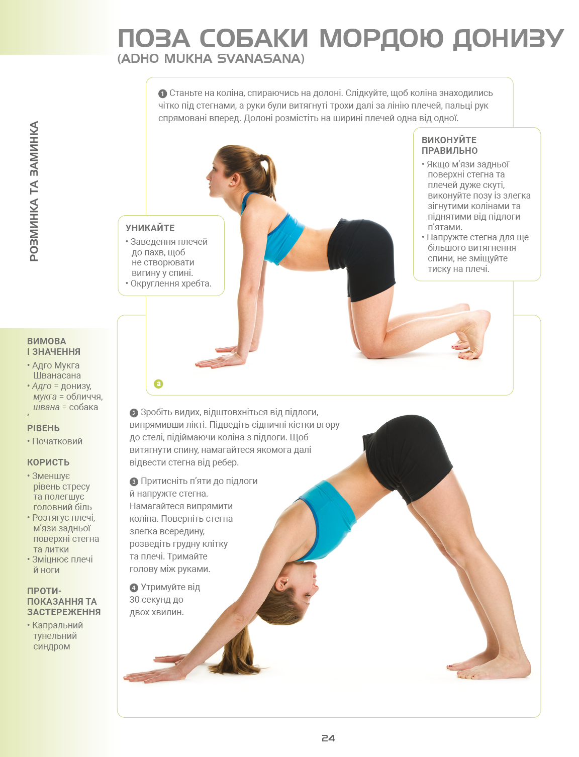 Метою цієї книги є надання корисної інформації для широкого загалу. Усі матеріали, зокрема тексти, схеми та зображення, мають винятково інформативний характер і не можуть замінити встановлення медичного діагнозу, консультацію лікаря чи лікування захворювань. Перш ніж утілювати будь-який план тренувань, читачі повинні звернутися до закладу охорони здоров’я або отримати консультацію сімейного лікаря. Авторка та видавець не рекомендують жодних методів лікування, жодних процедур, не дають порад щодо стану здоров’я та не нав’язують будь-якої інформації, викладеної у книзі, й наголошують на тому, що не несуть відповідальності за будь-які збитки, ризики чи втрати, особисті чи інші, що виникли внаслідок прямого або опосередкованого застосування тих чи тих матеріалів цього видання.