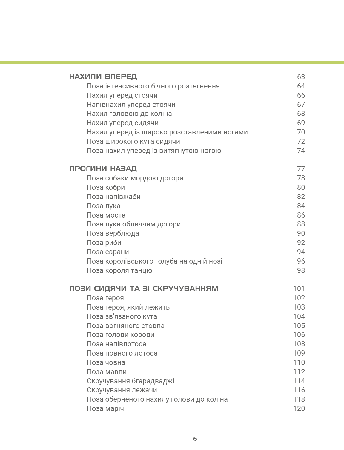 Цей унікальний ілюстрований посібник містить пояснення основ йоги, дихання та роботи хребта, зосереджуючись на основних м’язах тіла. Інструктори з йоги та їхні учні можуть використовувати цю книгу як візуальний посібник для розуміння функціонування м’язів у певних позах. Кожна поза показана на повнокольоровій фотографії разом із детальним анатомічним малюнком, де позначено активні та стабілізувальні м’язи, задіяні в ній. Завдяки цьому посібнику читачі зможуть максимізувати переваги кожної пози й розробити персоналізовану програму йоги, зосереджену на конкретних проблемних зонах.