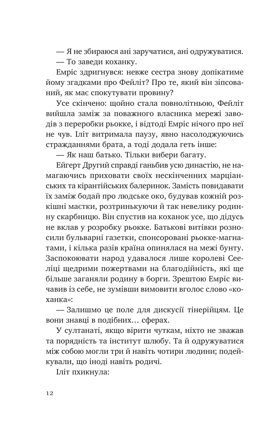 Принц Емріс — її недолугий молодший брат, якого вся країна винуватить у смерті короля.