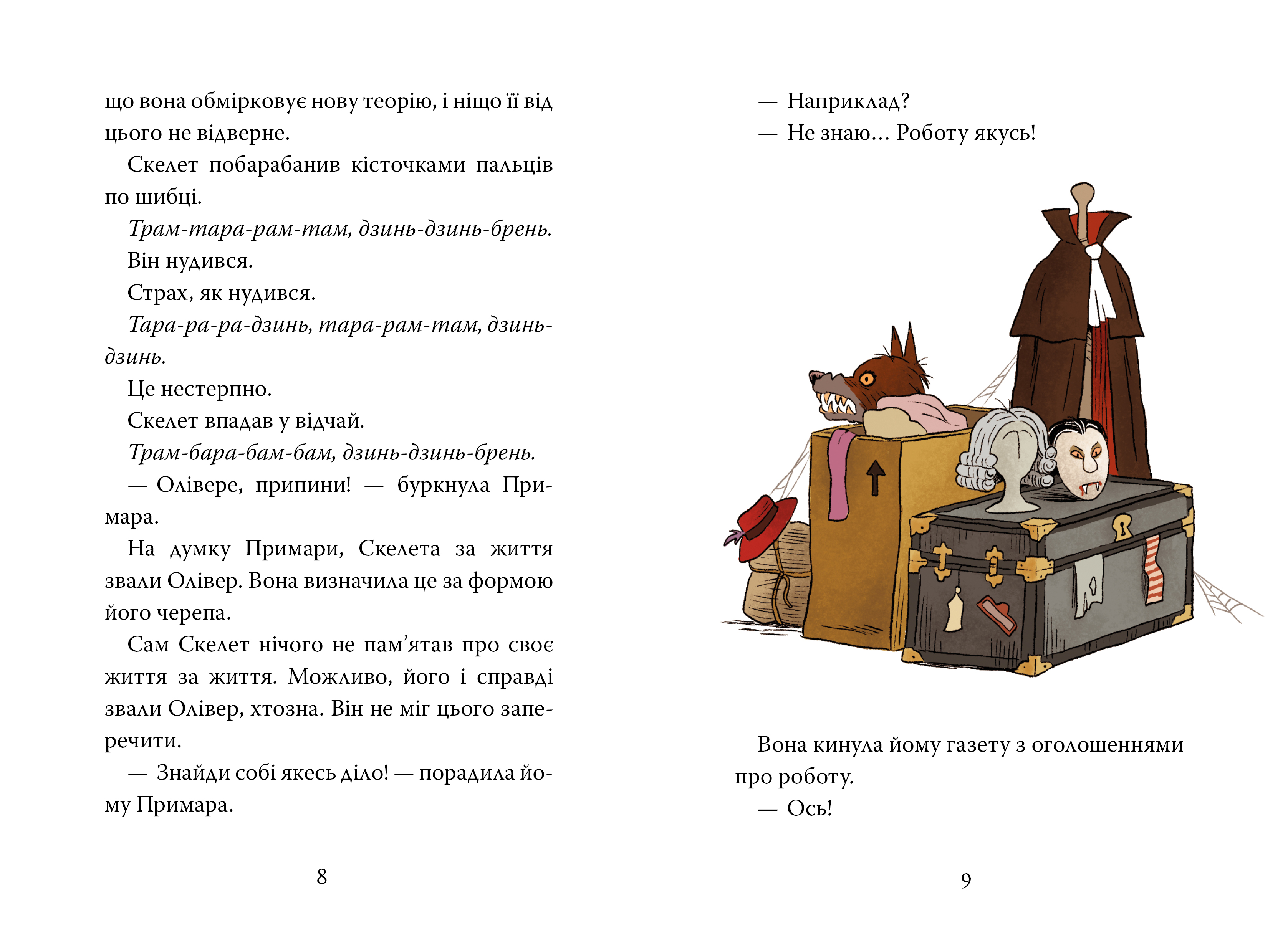 Скелет живе з приятелькою Примарою і мудрою пацючкою Філософкою. Веніамін мешкає у графині та її чоловіка (разом із сорока шістьма чихуахуа і рожевим кайманом). Та графиня терпіти не може дітей, тож винаймає няньку... яка виявляється переодягненим Скелетом. Що з цього буде... Який розгардіяш? Цікаво!..