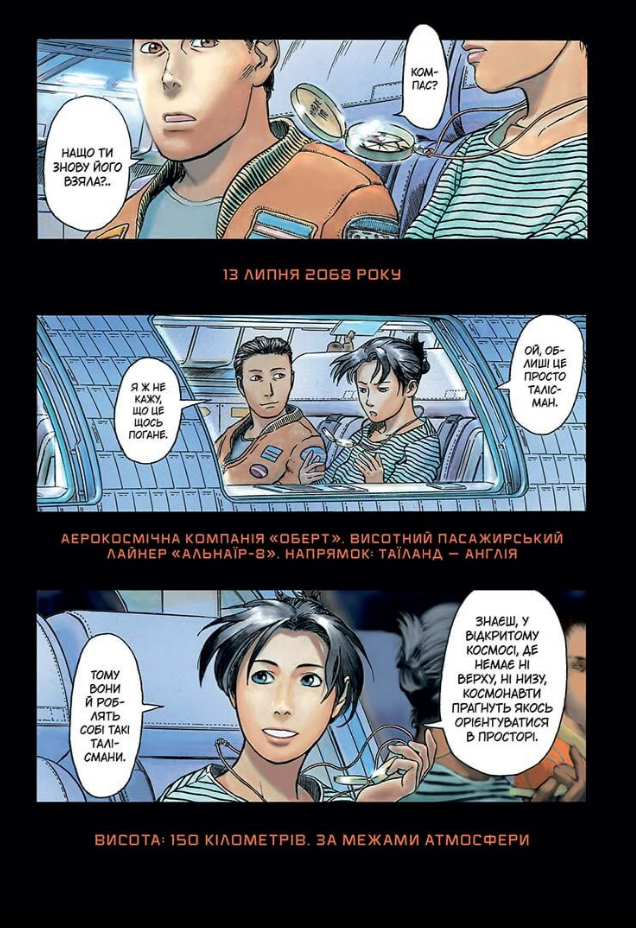 Кожен із них — людина з власними поглядами, звичками та минулим. Занурюючи читачів у монотонну рутину команди, манґа розкриває особисте горе, зачіпає філософські питання про місце людини в космосі та психологічні наслідки життя вдалині від дому.