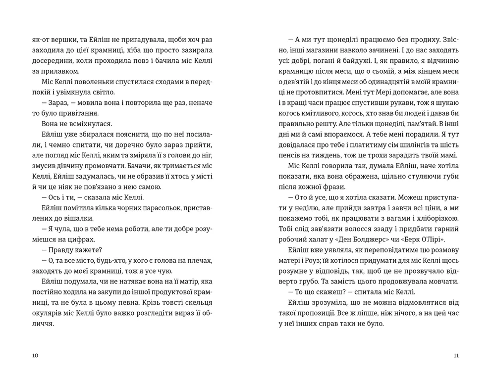 У Брукліні Ейліш влаштовується продавчинею в універмазі на Фултон-стріт і зовсім несподівано знаходить кохання. Тоні — світловолосий італієць із великої родини — терпляче й ніжно завойовує її серце.