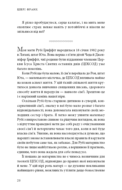 Дитинство Шарі Френк було постійною боротьбою за виживання. Її мати Рубі дотримувалася суворого морального кодексу, зберігаючи фасад ідеальної сім’ї для свого надзвичайно популярного YouTube-каналу «8 Passengers», який документував повсякденне життя й виховання шістьох дітей для 2,5 мільйона підписників. Але під поверхнею ховалася темна правда — здорова онлайн-персона Рубі приховувала тиранічний стиль батьківства. У міру того як росла популярність сім’ї на YouTube, зростала й манія Рубі щодо праведності. Підживлюючись садистським впливом свого тренера зі стосунків, вона запровадила для дітей нещадний дисциплінарний режим. Рубі заарештували у 2023 році за кількома звинуваченнями в жорстокому поводженні з дітьми при обтяжуючих обставинах. Того фатального дня Шарі опублікувала в мережі фотографію поліцейської машини біля їхнього будинку. Підпис містив одне слово: «Нарешті». У цій книзі Шарі розкриє тривожну правду про те, що насправді стоїть за ідеальною картинкою «8 Passengers».