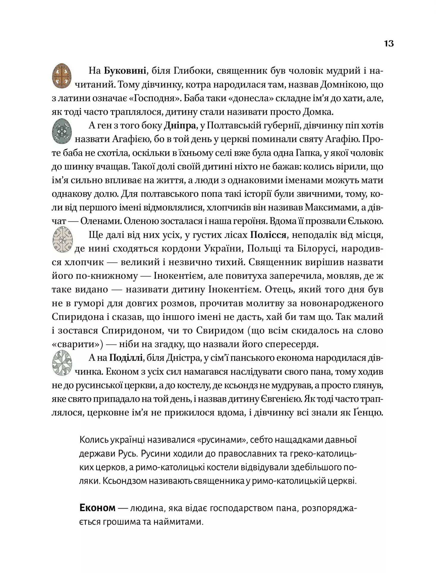 Ця книжка — подорож у дитинство п’ятьох хлопців і дівчат із різних регіонів України кінця ХІХ століття. Вона відкриває світ обрядів, слів і речей, які колись здавались звичними на Гуцульщині й Буковині, Поліссі, Поділлі й Наддніпрянщині.