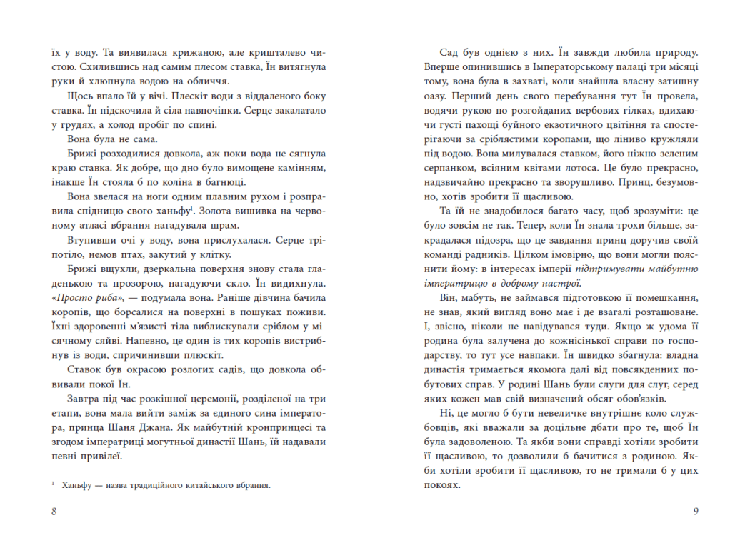 Але вона дізнається темну таємницю, яку імператорська родина приховує століттями, а ще палацом ширяться чутки про сімох загадково зниклих наречених! І світ Їн перевертається, усі її сподівання й саме життя летять шкереберть. Проте чи готова зухвала й завзята дівчина сидіти склавши руки? Аж ніяк! Не тоді, коли її замикають перед весіллям, і вже точно не коли кругом лютує битва епічного масштабу. Та чи вистачить Їн сили? Чи стане мудрості?