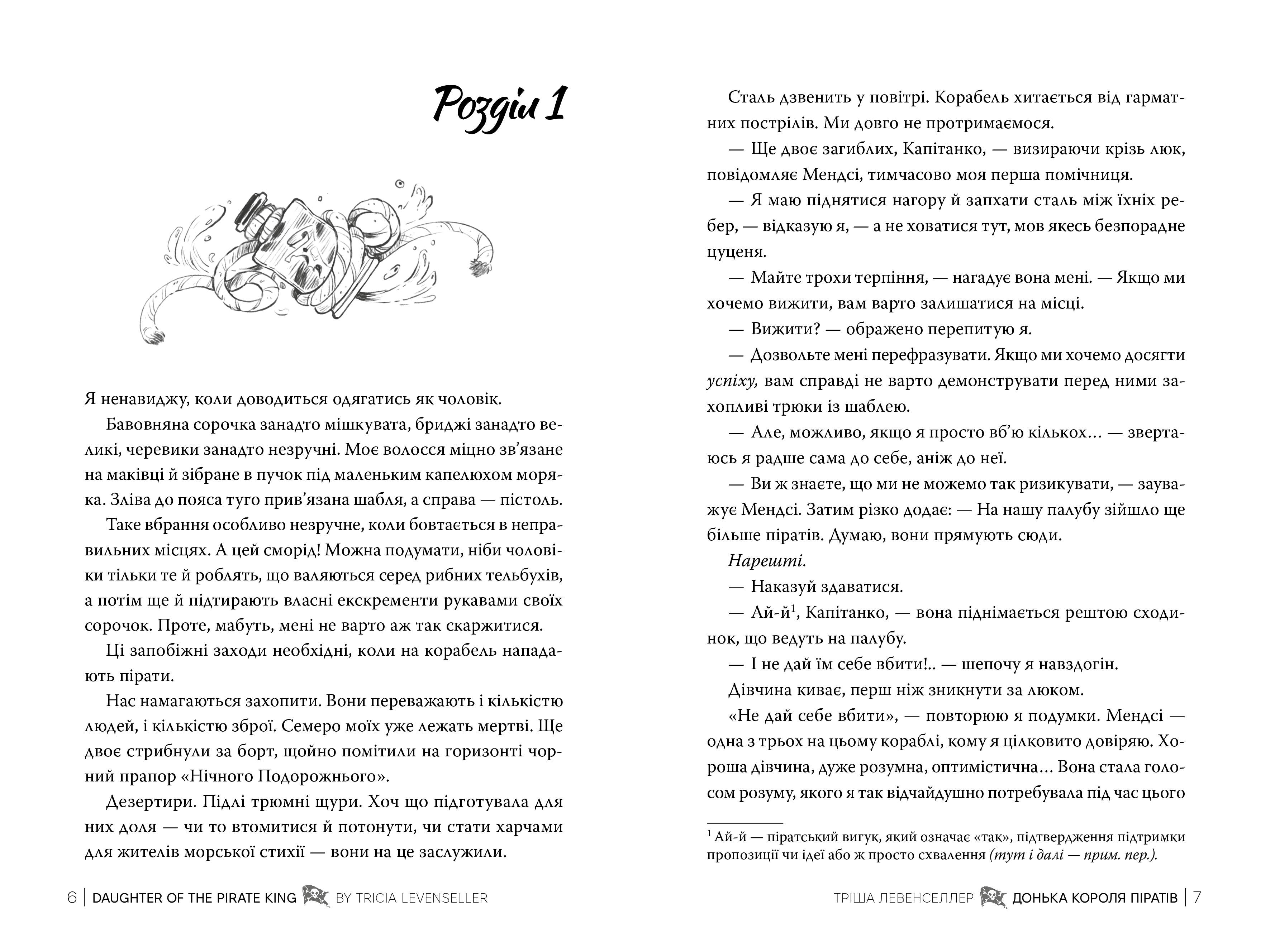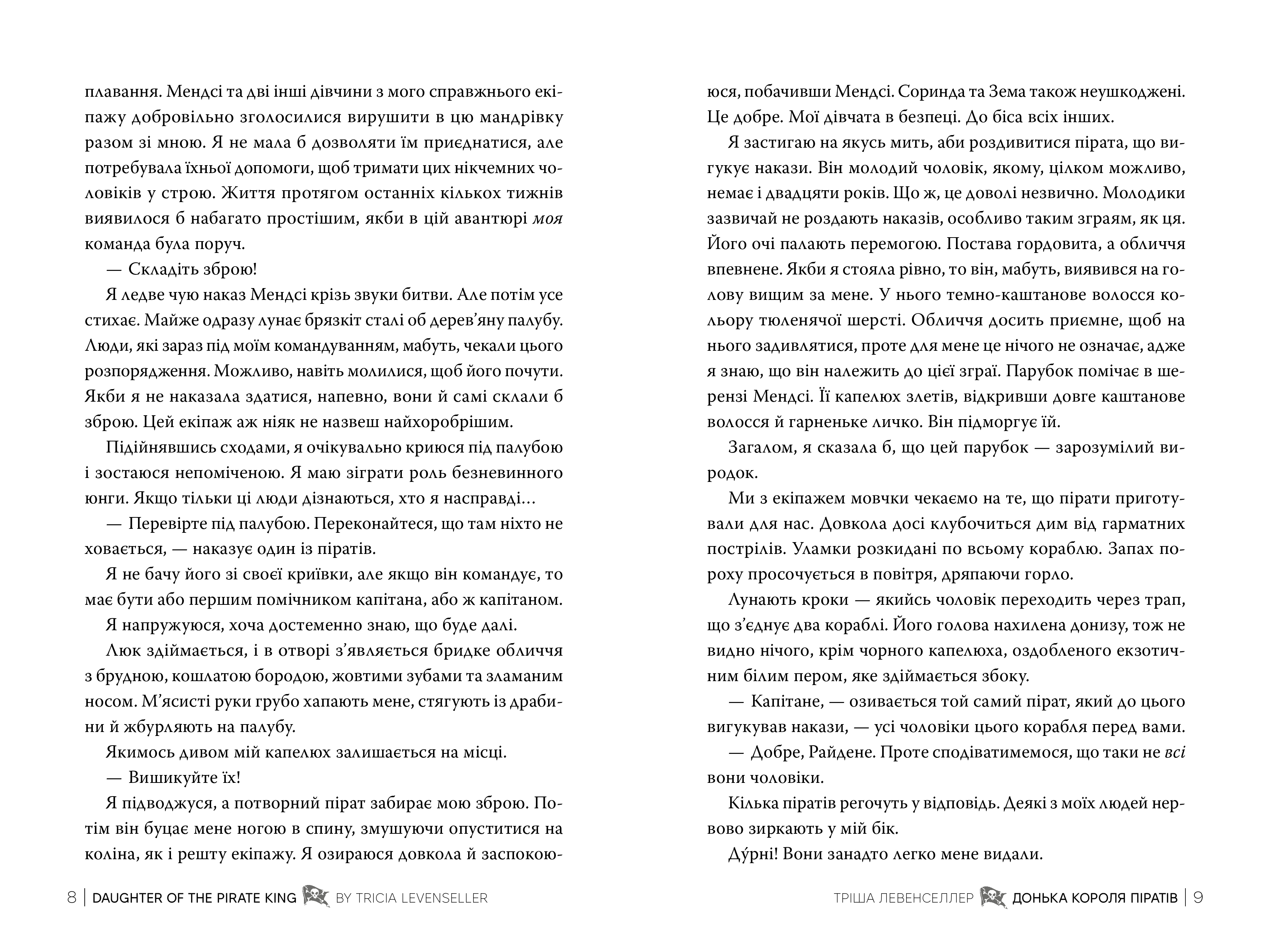 У романі «Донька короля піратів» Тріша Левенселлер поєднує карколомні пригоди, романтичну історію та дрібку магії, перетворюючи все це в захопливу піратську казку.