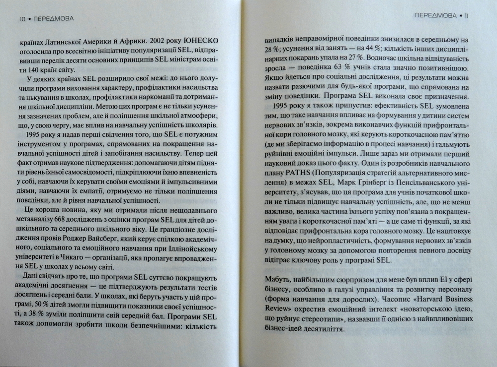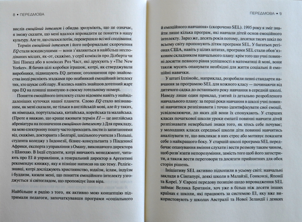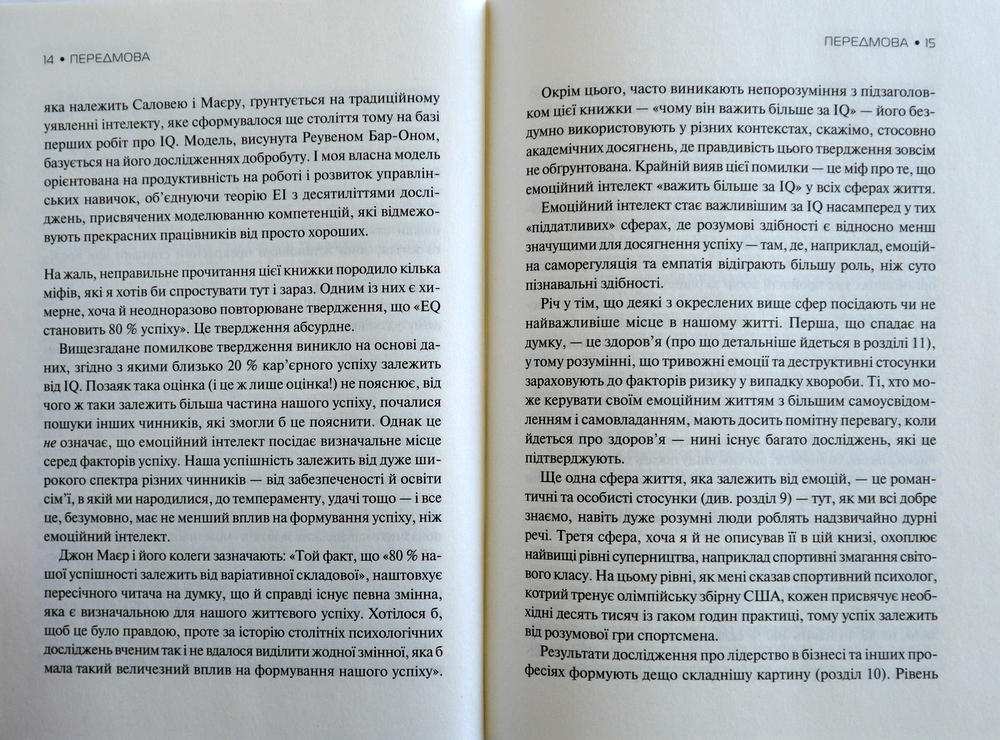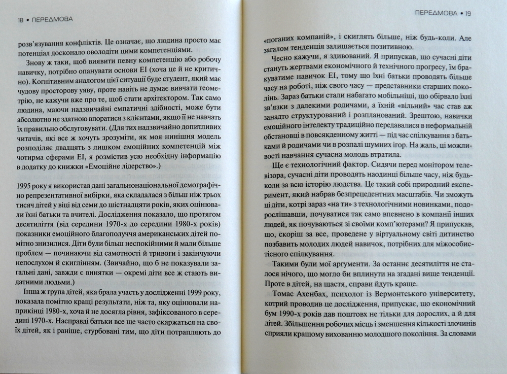 Емоційний інтелект та рівень IQ – чи пов'язані вони між собою? Чому люди з високим рівнем інтелекту не завжди успішні в житті? Що впливає на формування емоційного інтелекту у дитячому віці? Яка роль батьків у розвитку дитини? Чому дитинство є важливим етапом життя, на якому формуються звички, нахили людини? Чому з віком так важко змінюватися та навчатися? Книга «Емоційний інтелект» під авторством Даніела Гоулмана дає відповіді на безліч таких запитань. Вона доповнена яскравими прикладами із практики, є описи результатів психологічних експериментів, які проводилися в різноманітних закладах США та показали взаємозв'язок між почуттями людей та розвитком взаємовідносин.
