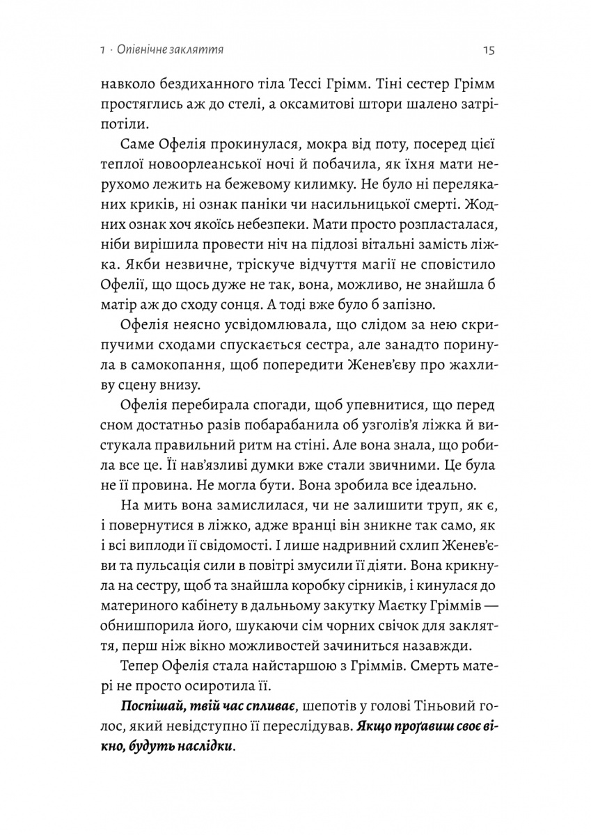 На Офелію чекає дев’ять випробувань. Демони, монстри й ілюзії — Фантазма щодня породжує нових ворогів, але дівчина має зробити все заради перемоги. Заради сестри. Коли страх починає брати гору, на шляху дівчини з’являється Блеквелл — загадковий, несамовито привабливий і небезпечний незнайомець, який обіцяє провести її крізь кожне випробування… в обмін на десять років її життя.