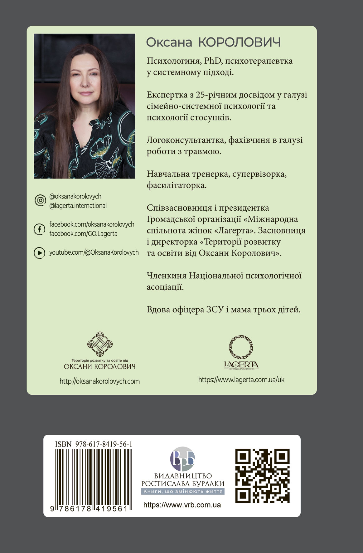 “Феномен психології горювання. Назустріч Силі» Оксани Королович – це чесна, глибока та терапевтична книга про те, як пережити втрату та знайти внутрішню підтримку там, де здається, що вона більше не може бути. Це видання створено для тих, хто проходить через шлях горя, а також для фахівців, які супроводжують людей у найвразливіші моменти їхнього життя.