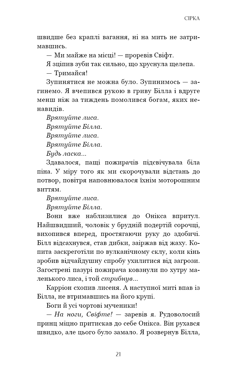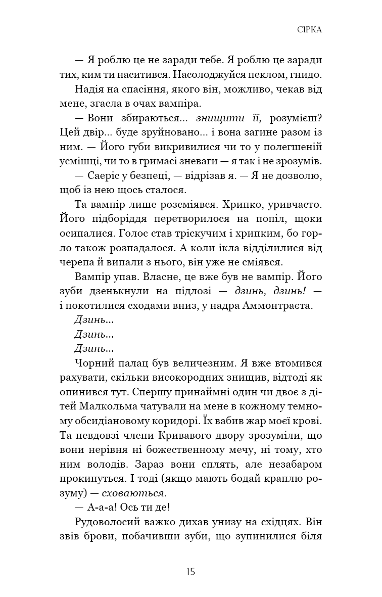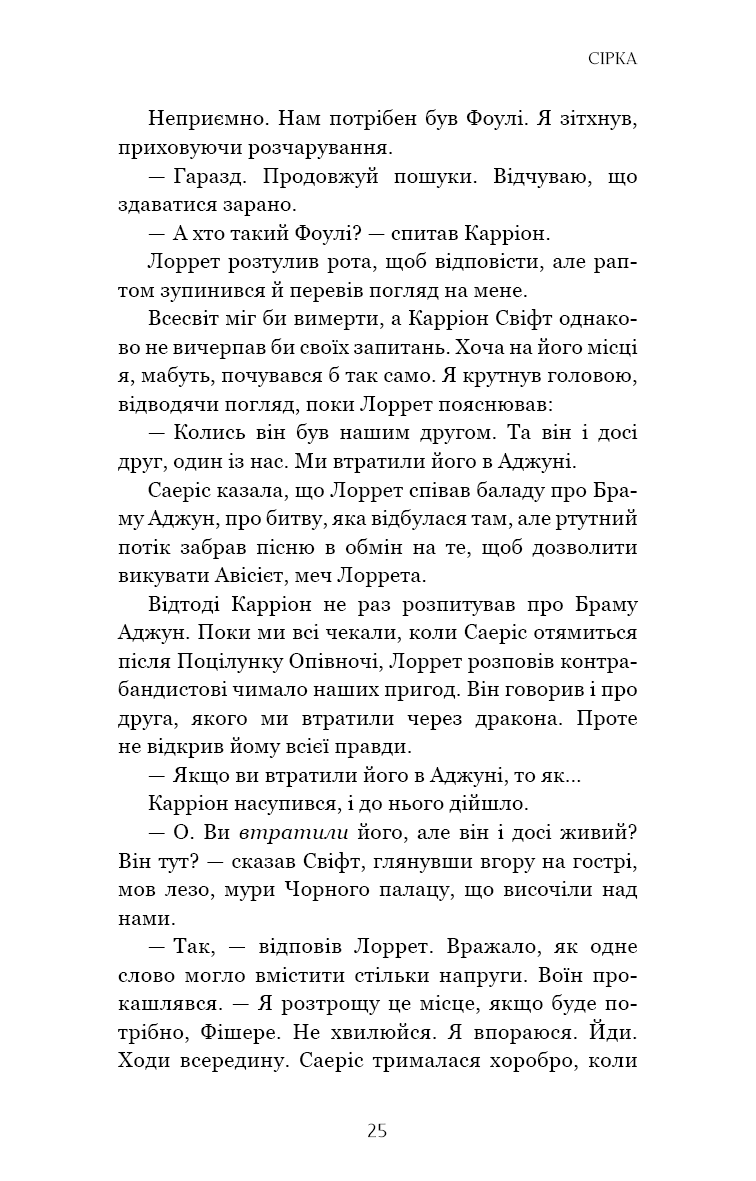 Саеріс Фейн не шукала влади, та корона Кривавого двору стала її обов’язком і пасткою: сила, що зробила її королевою, тепер закриває їй шлях до рідного дому. Поки Саеріс бореться за свій народ і брата, Кінґфішер готується до свого найдивнішого випробування. Він пройшов крізь пекло, та чи виживе в компанії Карріона Свіфта? У провулках Срібного міста, де тиша дорожча за золото, кожен невчасний жарт може стати фатальним.