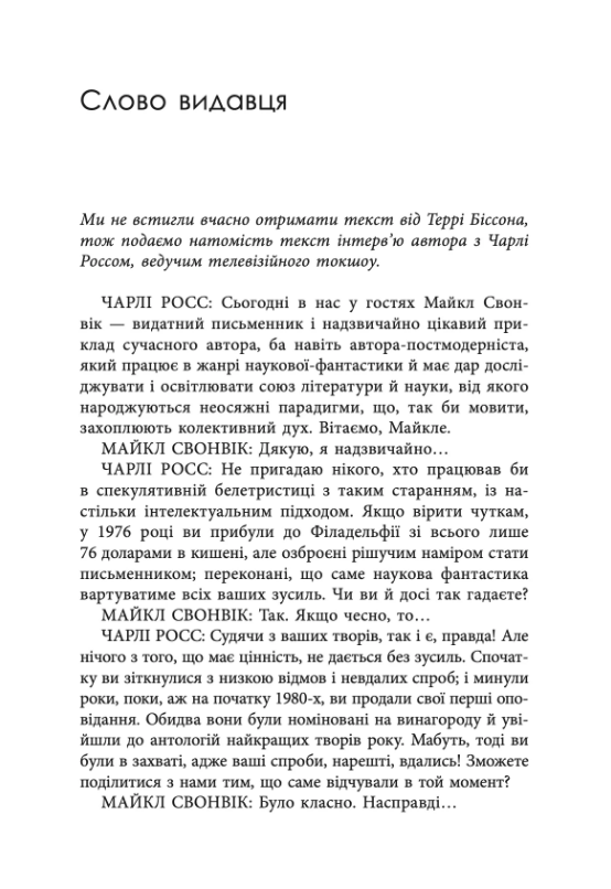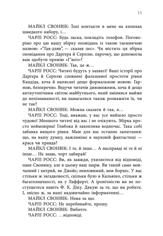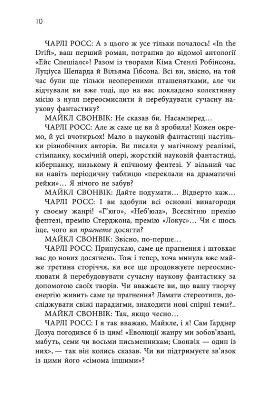 Це фантастика, що не обмежується жанровими рамками: Свонвік вміло поєднує елементи кіберпанку, альтернативної історії, міфології та соціальної сатири, створюючи гострі, насичені та емоційно влучні тексти.