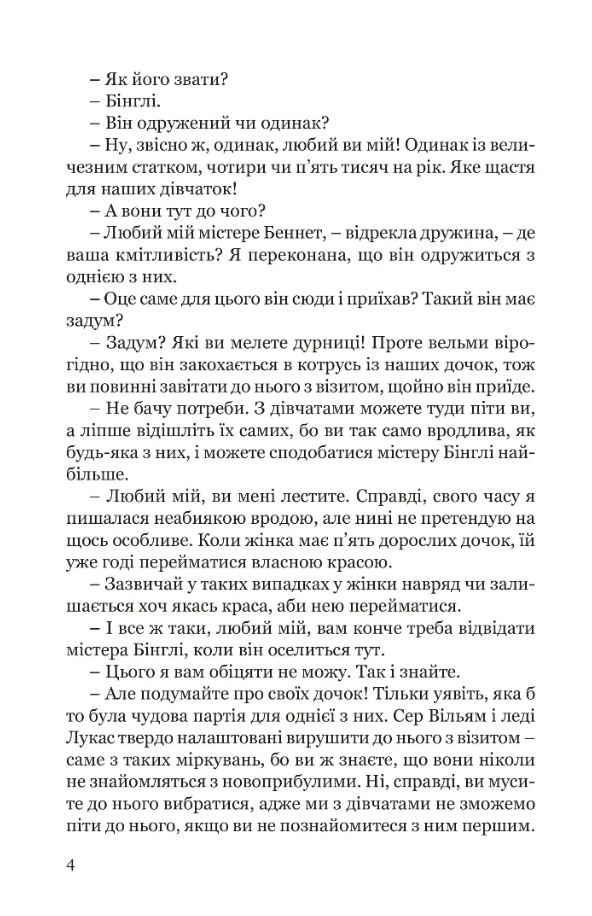 Роман Джейн Остін, сповнений тонкої іронії й гумору, насичений живими діалогами і комічними та драматичними ситуаціями, малює блискучий портрет англійського вищого і середнього суспільства, вже два століття викликає гостру зацікавленість читачів.