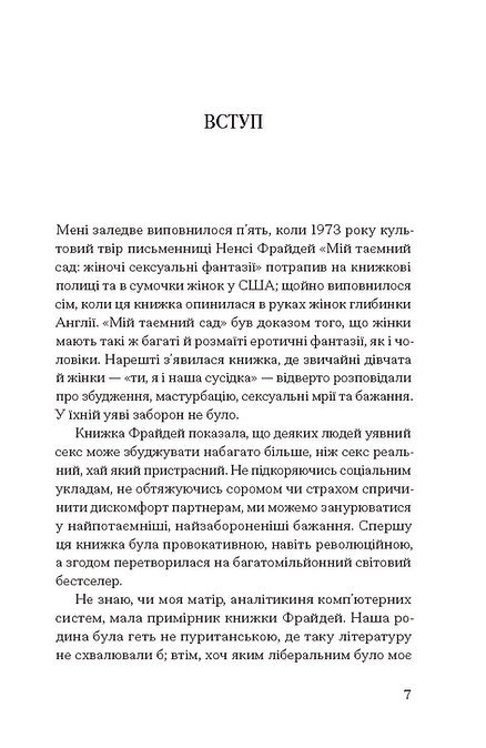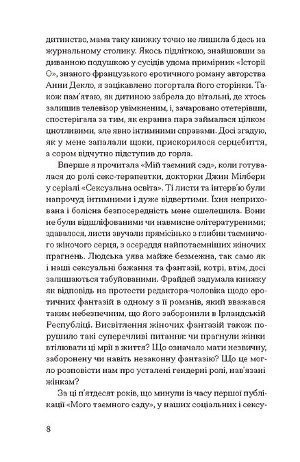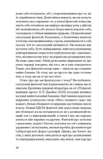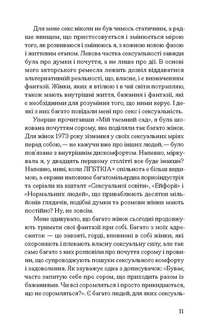 Говорячи про секс, ми говоримо про жіночність і материнство, зраду та експлуатацію, згоду та повагу, справедливість і рівність, кохання та ненависть, насолоду та біль. І все ж таки з багатьох причин — складних чи ні — так багато з нас про це не говорять. Наші найглибші, найінтимніші страхи й фантазії залишаються замкненими всередині, поки хтось не принесе ключа. А ось і ключ.