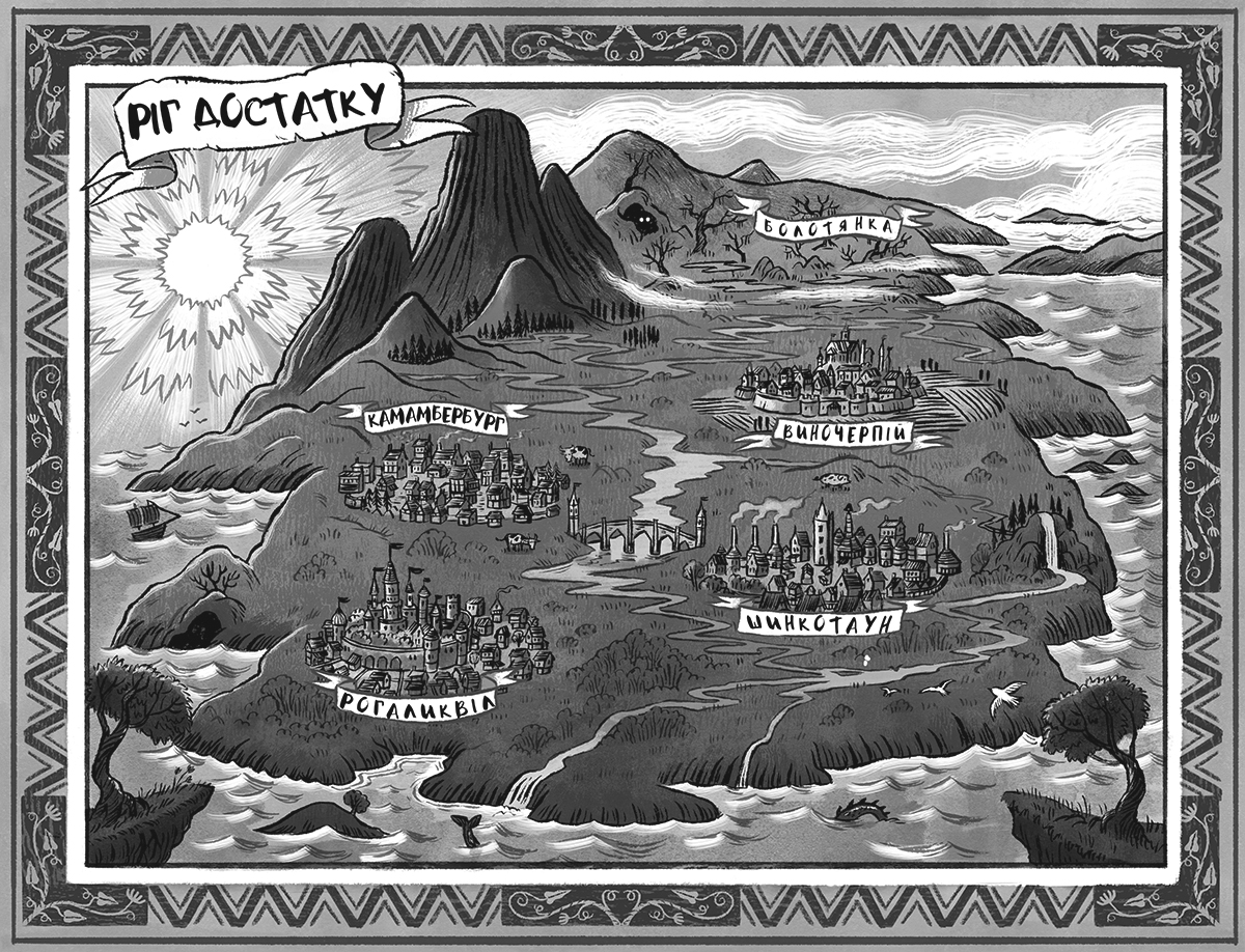 Була колись крихітна країна під назвою Ріг Достатку. Її мешканці були щасливі, купалися в золоті і славилися своїми кулінарними шедеврами: від ніжніших за оксамит вершкових сирочків Камамбербурга до солодких випічок Рогаликвіла — усі ці делікатеси були такі смачнющі, що люди плакали від щастя, ласуючи ними...