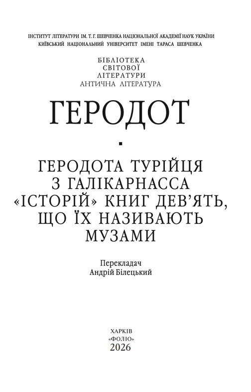 «Історії в дев’яти книгах» – це історико-етнографічний твір, написаний у V столітті до нашої ери. У дев’яти книгах, кожна з яких названа на честь однієї з муз, автор викладає події греко-перських війн, піднесення Перської імперії, битви при Фермопілах, Саламіні та Платеях. Геродот також розповідає про культуру, звичаї та історію народів Стародавнього Сходу й Греції. Автор поєднує історичні факти, легенди й етнографічні описи, прагнучи дати повне уявлення про світ свого часу. Геродот ставить собі за мету зберегти в пам’яті діяння як еллінів, так і варварів, щоб ці події не були забуті з часом. Його праця стала основою європейської історіографії, заклавши принципи критичного аналізу та пошуку причин подій.