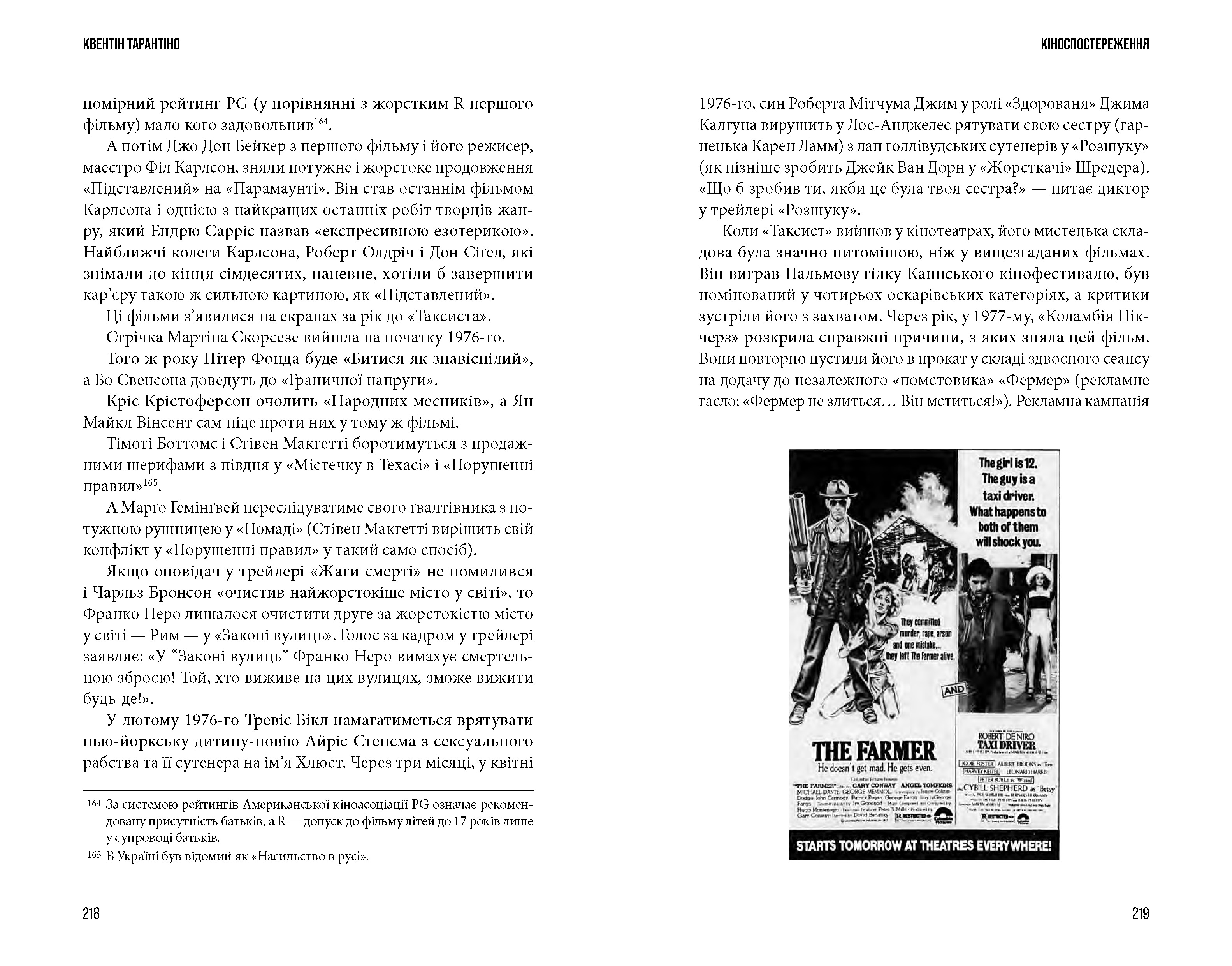 Тарантіно — унікальний випадок у кінематографі. Хлопчик, закоханий у кіно, що пройшов доволі нетривіальний, як на голлівудського режисера, шлях (за його власними словами, «я не ходив у кіношколу, я ходив у кіно»). Його творчість не вкладається у сталі жанрові рамки, він ніколи не тяжів до лінійності сюжету, і ця книга не виняток.