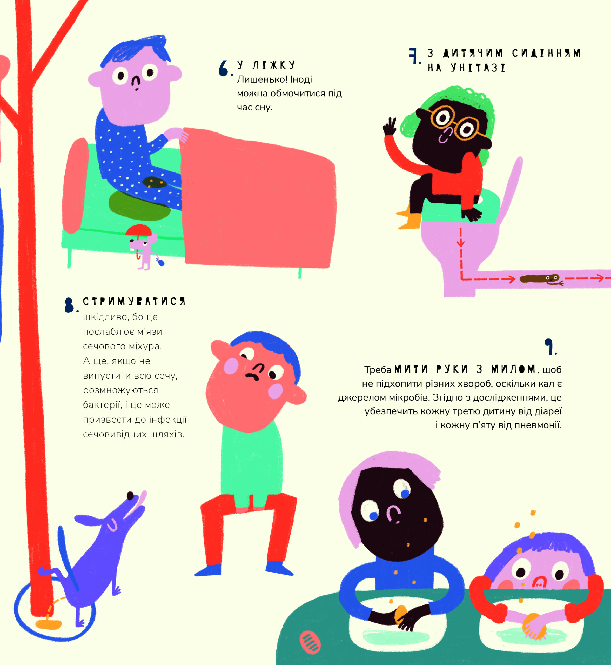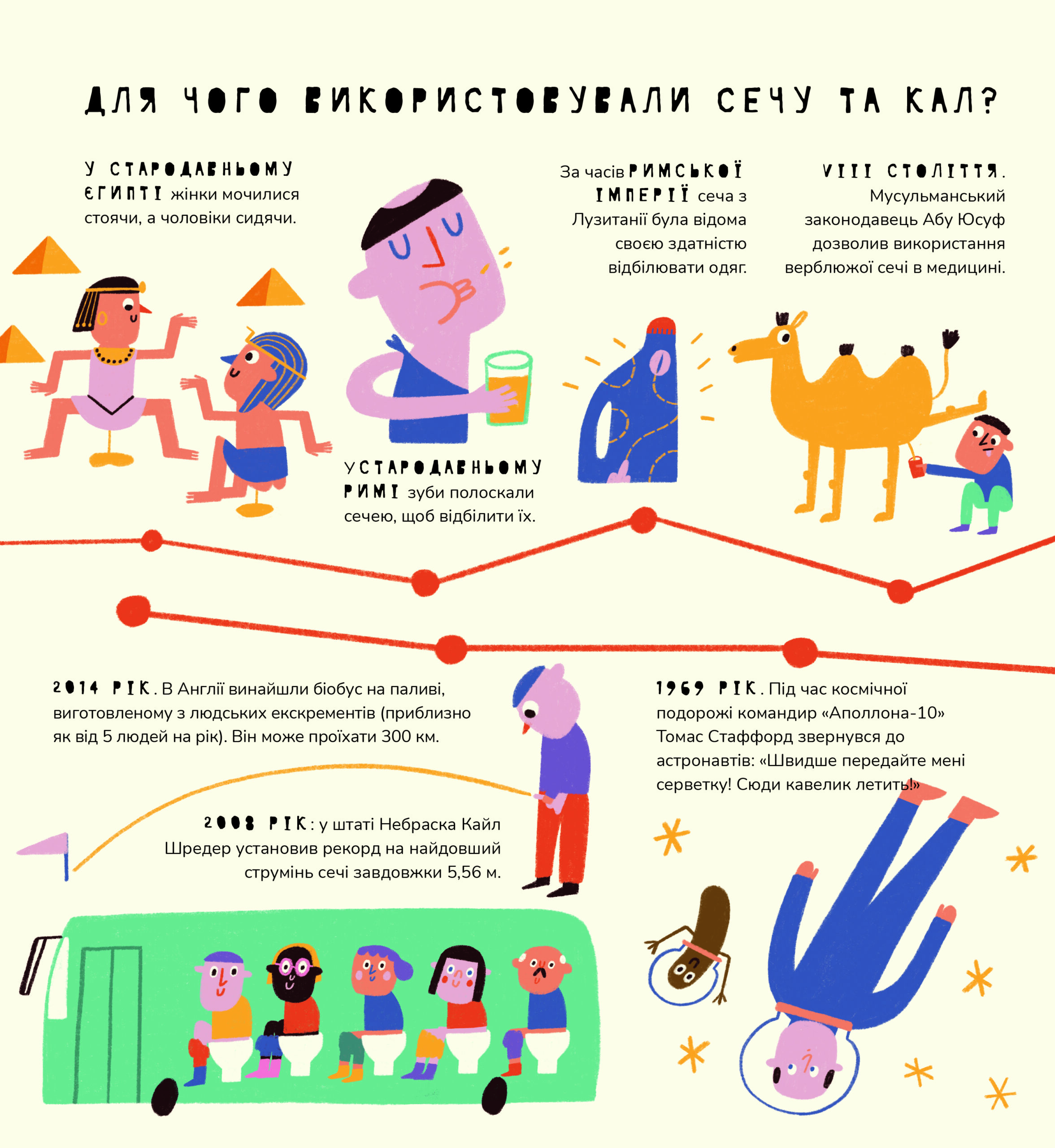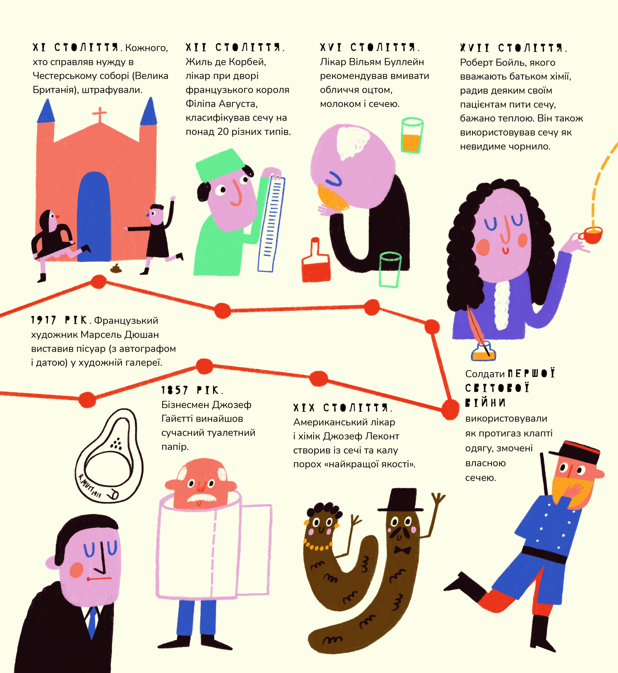 І все-таки: що ми про них знаємо? Чому вони викликають зацікавлення або неприйняття? Чи знаєте ви, що в одних країнах світу какають сидячи, а в інших – навпочіпки? Яку інформацію про своє здоров’я ми можемо отримати за кольором та формою екскрементів? І чи відомо вам, що в Стародавньому Римі сечею відбілювали зуби? З цією книжкою ви вже по іншому сприйматимете все, що стосується «пісь-пісь» і «кака».