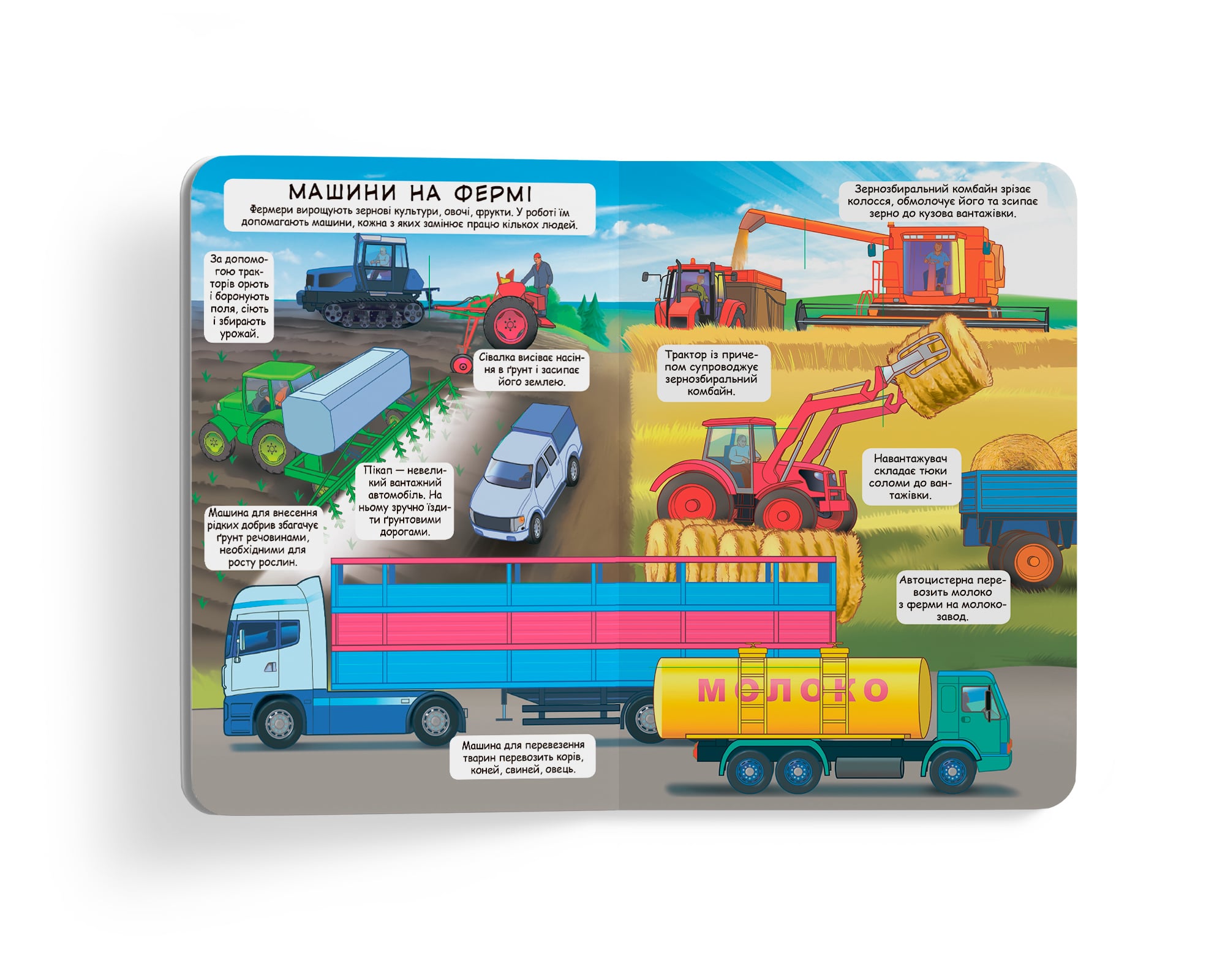 «Книжка з віконцями. Дізнайся секрети транспорту»- книга допоможе дізнатися, як працюють різні види транспорту. Ти побуваєш на будівництві, дізнаєшся, навіщо потрібні вантажні автомобілі, як влаштовані літаки (тобі навіть вдасться заглянути в кабіну до пілота) і круїзні лайнери, машини-рятувальники і сільськогосподарська техніка (наприклад, як влаштований комбайн і як відбувається збір урожаю). Транспорт буває дуже різний, як пояснити дитині, що робить та чи інша машина і для чого вона потрібна людині. За допомогою книги, ви зможете показати дитині всю різноманітність машин. Зазирни під віконця, щоб розкрити всі секрети транспорту.