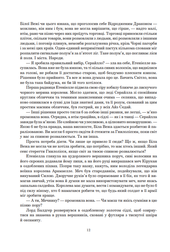 Елейн, Найнів, Ав’єнда та їхні союзниці прагнуть за допомогою Чаші Вітрів повернути світові природну рівновагу, зруйновану Мороком. Та що змусить їх тікати, не знаючи, кому можна довіряти? У Ґелдані Перрин Айбара вступає в протистояння з фанатичним Пророком Дракона. Тим часом Еґвейн аль’Вір, Амерлін повсталих Айз Седай, поступово підкорює непокірних сестер своїй волі та веде їх просто під стіни Тар Валона — туди, де вирішиться доля Білої Вежі. А Ранд аль’Тор вирушає назустріч шончанцям, знаючи, що кожне звернення до Єдиної Сили може стати фатальним. Виснажений війною та власним безумством, Ранд дедалі більше віддаляється від тих, хто ще вчора був йому вірний. Чи можливо врятувати світ, не знищивши при цьому самого себе?