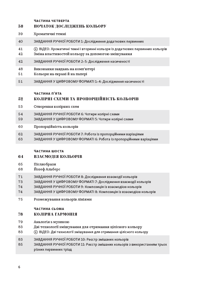 Книга «Колір: Практикум для художників та дизайнерів» Девіда Горнунга - чудовий практикум для тих, хто прагне дослідити тонкощі роботи з кольором, експериментувати й знати базові правила. Адресована художникам, дизайнерам й іншим митцям, книжка може зацікавити й тих, хто лише навчається працювати з кольором, хоче освоїти тонкощі змішування барв на папері й у комп’ютерній графіці.Посібник пропонує багато цікавих пояснень теорії кольору, поєднання кольорів, тонкощів сприйняття і чимало цікавих практичних завдань для вироблення практичних навичок. Видання супроводжується численними ілюстраціями поєднання кольорів, роботами митців й тих, хто практикував цей курс.