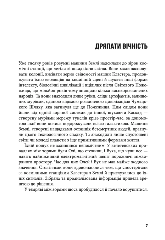 Події розгортаються через тисячі років після катастроф, які змінили хід історії людства. У цьому далекому майбутньому Землею керує мережа розумних машин, тим часом люди діляться на безсмертних і смертних, що виконують особливу місію в міжзоряному просторі. Це масштабна й водночас особиста історія про пошук істини, довіру, сумніви та надію перед обличчям незбагненного космосу.