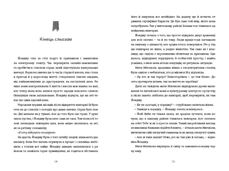Йонджу виснажена. У жінки є все — успішна кар’єра, шлюб, швидкий столичний ритм життя, і все ж вона відчуває порожнечу. Тож робить відчайдушний крок, залишає старе життя позаду і здійснює свою давню мрію: відкриває книгарню. Спершу Йонджу ведеться непросто, втім чим далі, тим глибше жінка занурюється в новий захопливий світ, що гоїть її душу. Книгарня «Хюнам-тон» перетворюється на теплий, гостинний притулок для загублених душ — місце, де можна відпочити, зцілитися і згадати, що ніколи не пізно почати все спочатку. Ця затишна історія сподобається тим, хто почувається дещо загубленим у складному «дорослому» світі, і допоможе поглянути на життя з іншої перспективи завдяки різноманітним персонажам, серед яких ви неодмінно знайдете себе.