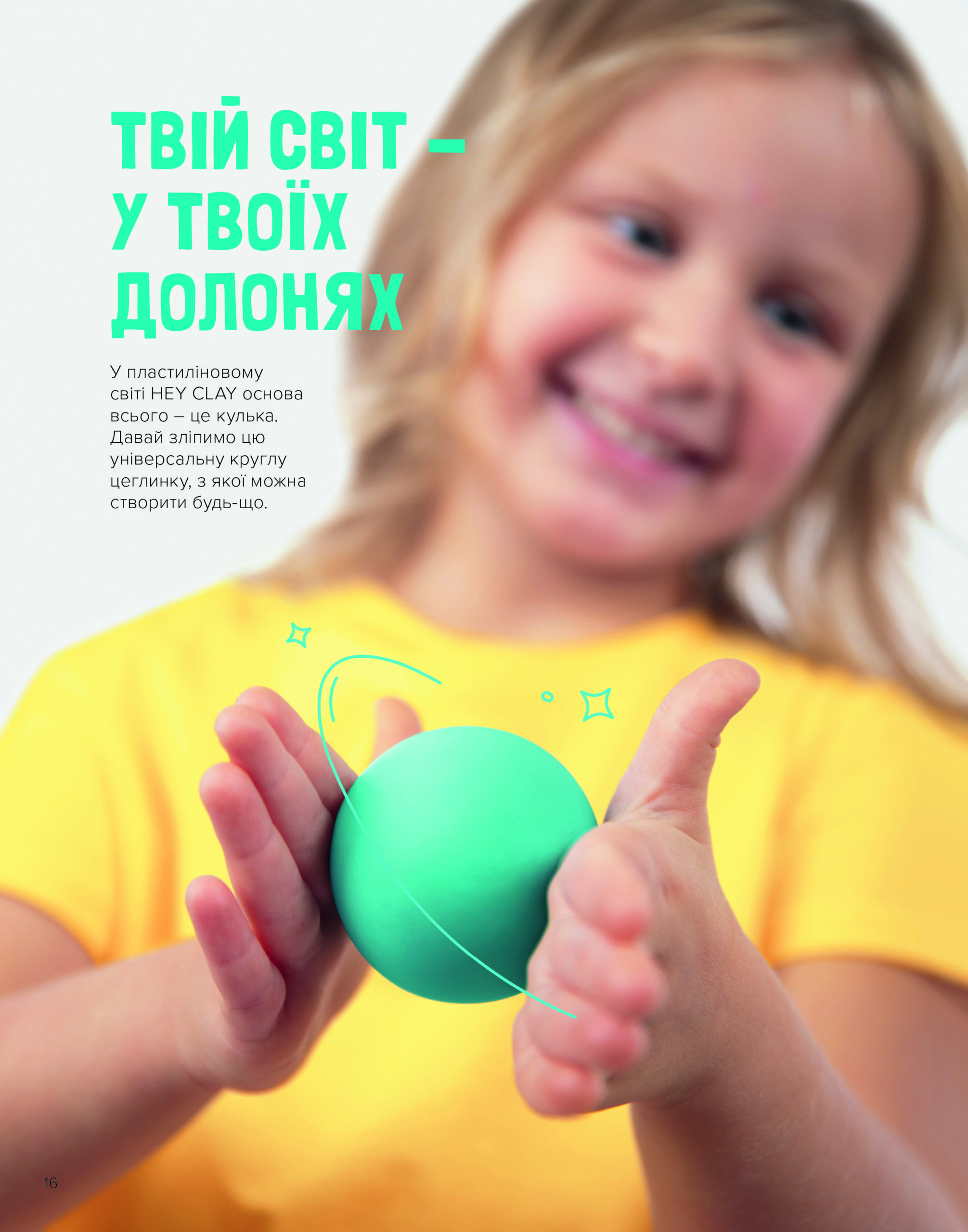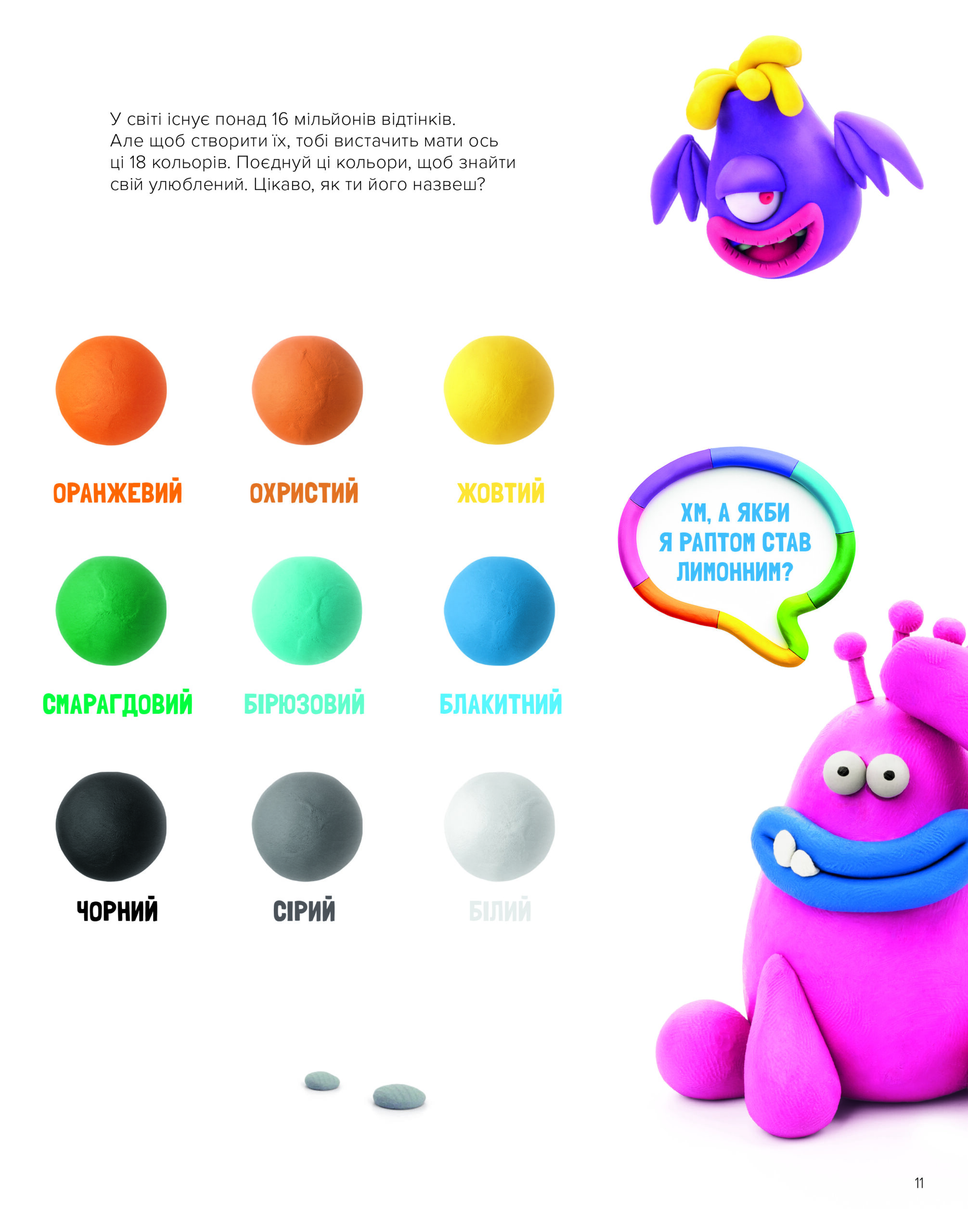 Вітаємо у світі HEY CLAY, де можливо все. Без жодних перебільшень. Тільки уяви світ, де все зроблено із пластиліну. М’якого та податливого матеріалу, який може набути будь-якої форми та будь-якого кольору, яких ти тільки забажаєш. Книга пластилінових ідей HEY CLAY дасть тобі змогу створювати власні кольори.