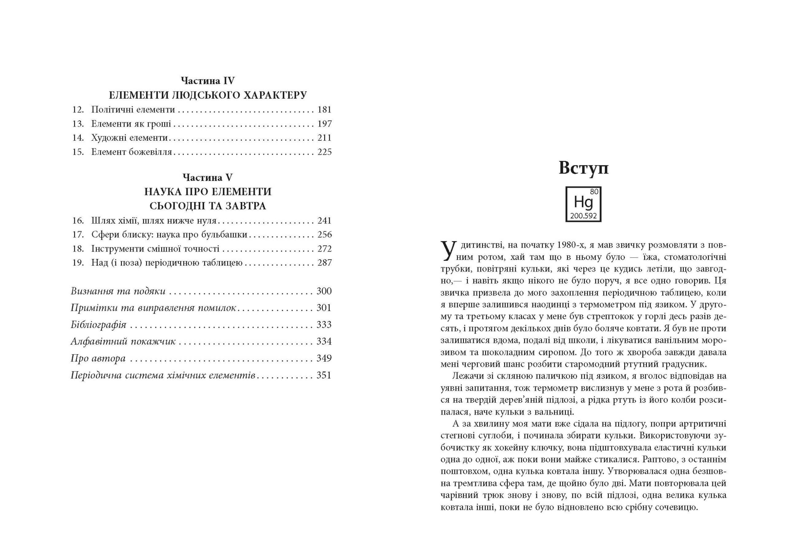 Через що Магатма Ґанді ненавидів йод? Як радій майже зіпсував репутацію Марії Кюрі? Чому галій є улюбленим елементом хіміків-жартівників? Ці та інші неймовірні оповіді про науку, історію, фінанси, міфологію, мистецтво, медицину тощо розкаже періодична система хімічних елементів. Вона є не лише видатним науковим досягненням, а й скарбницею пригод, зради та одержимості. Книжка містить захопливі факти про багато хімічних елементів, а також їхню роль в історії людства та житті своїх першовідкривачів. Ви дізнаєтеся, що відбувається всередині зорь і до чого тут Великий вибух. І це буде дуже цікаво для допитливих читачів будь-якого віку.