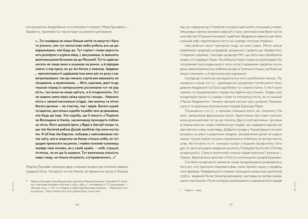 Львівська кухня — це не лише про творення їжі впродовж століть, вигідне розташування міста чи історичні зміни, які переплели долі різних народів у Львові та його околицях. Це також про родину і дім, дитячі спогади й мандрівні переписи, які донині зберігаються на пожовклих від часу сторінках записників. Це обов’язково виняткова кухонна магія, яка витворювалася особливою мовою, родинна тяглість традицій та унікальний львівський дух, який досі можна відчути у старих кнайпах, нових рестораціях і, звичайно, на домашній кухні.