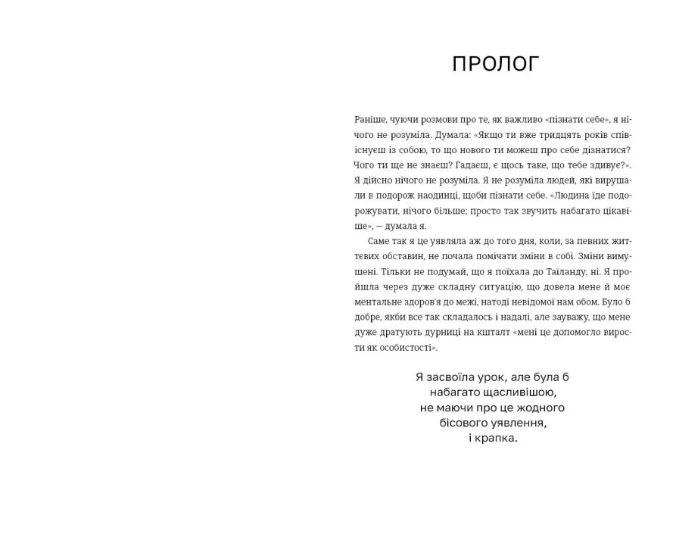 У повсякденному житті ми стикаємося з безліччю ситуацій, які спричиняють дискомфорт, ранять нас або викликають тривожність. Розрізнити ці емоції, ідентифікувати їх та керувати ними буває дуже важко, це змушує ставити собі запитання: що зі мною не так? Чому я це відчуваю? Книжка психологині та контент-кріейторки Елізабет Клапес, відомої в соцмережах як Есмі, допомагає знайти відповіді. Поради авторки відкривають шлях до мандрівки самосвідомістю, внутрішнього зцілення та любові до себе.
