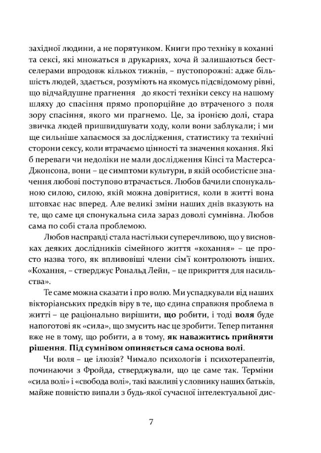 Пропонуємо до уваги читача ще одну працю відомого американського психолога і психотерапевта Ролло Мея «Любов і воля». Ця книга, яка заслужено посіла почесне місце в списку бестселерів, відкриває перед нами світ наших почуттів, переживань, захоплень, вагань, різних психічних станів через занурення у первісність виникнення їх не лише на прикладі життя людини як самості, а на прикладі різноманітних життєвих досвідів людства. Серед найважливіших досвідів, на яких зосередився автор і які намагався проаналізувати у певній хронологічній протяжності, – любов і воля, такі важливі для формування повноцінного життя у всіх його виявах: від сексуального потягу до закоханості, глибокого кохання і, врешті, до віднайдення справжнього сенсу людського існування у взаємозв’язку любові й волі.