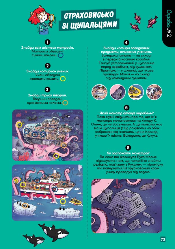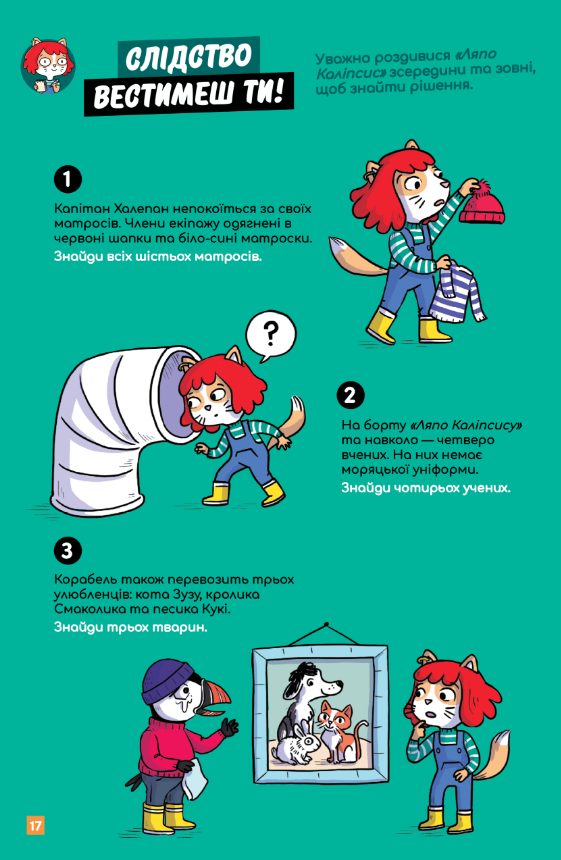 Цього разу киця вирушила розгадувати таємниці в моторошних локаціях, від яких аж продирає морозом: зруйнований замок на горі Дракк, підводний човен під атакою гігантського восьминога, лігво чарівника Вулкано, яке кишить вогняними монстрами та зомбі… Уже доволі страшно, однак на цьому справи детективки не закінчуються — примари й інші дива дивні просто проходу не дають!