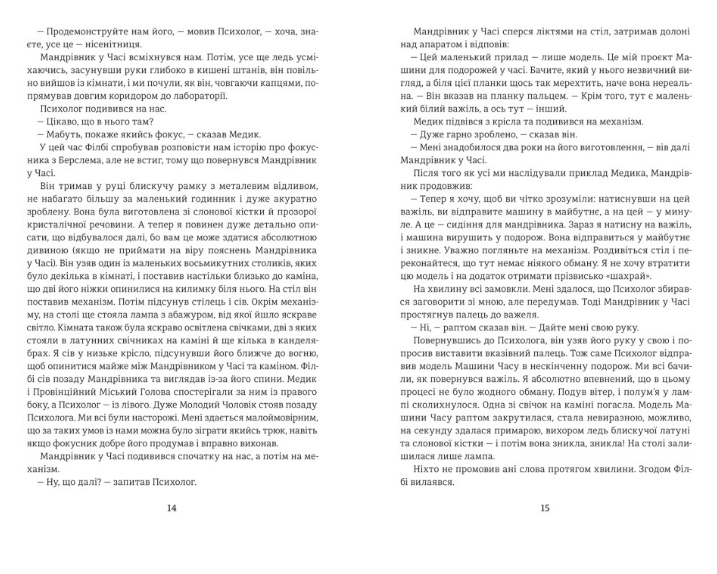 «Машина Часу» Герберта Веллса — класичний науково-фантастичний роман, що досліджує ідею подорожей крізь епохи. Таємничий Мандрівник створює пристрій, здатний переносити його крізь час. Опинившись у далекому майбутньому, герой стає свідком занепаду людської цивілізації та протистояння двох рас — Елоїв і Морлоків. Веллс не лише розповідає захопливу історію, а й порушує важливі соціальні та філософські питання про еволюцію людства, прогрес і його наслідки.