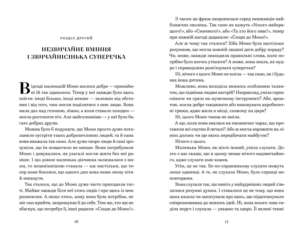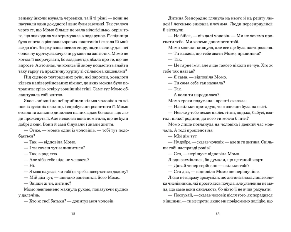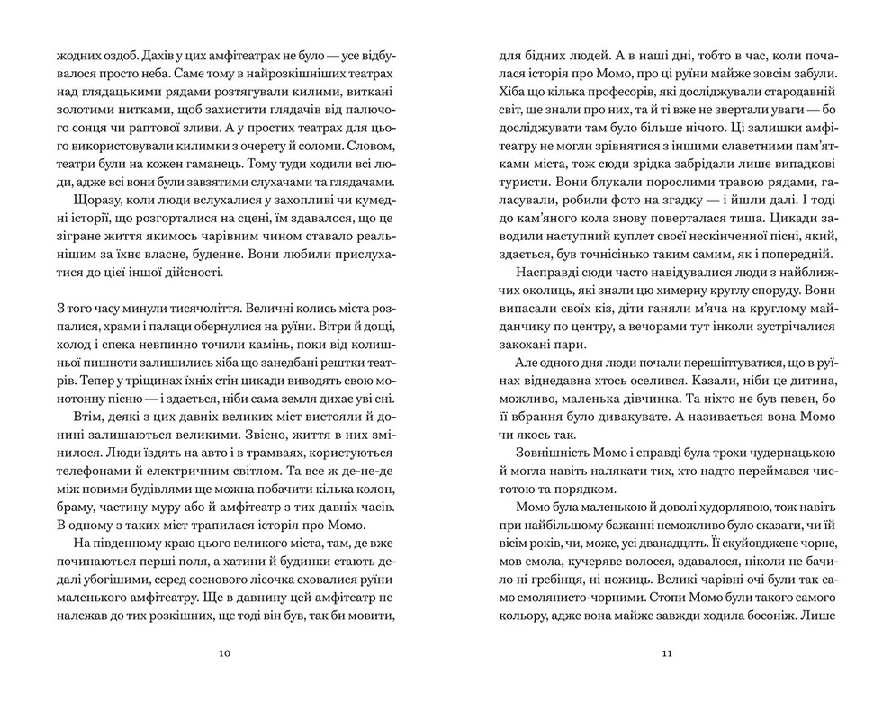 Та одного дня з’являються зловісні сірі пани — вони тихо й непомітно захоплюють місто. Лише Момо спроможна їм протистояти. Разом із майстром Гóрою та його дивовижною черепахою Кассіопеєю вона вирушає за межі часу, щоб розкрити темні таємниці...