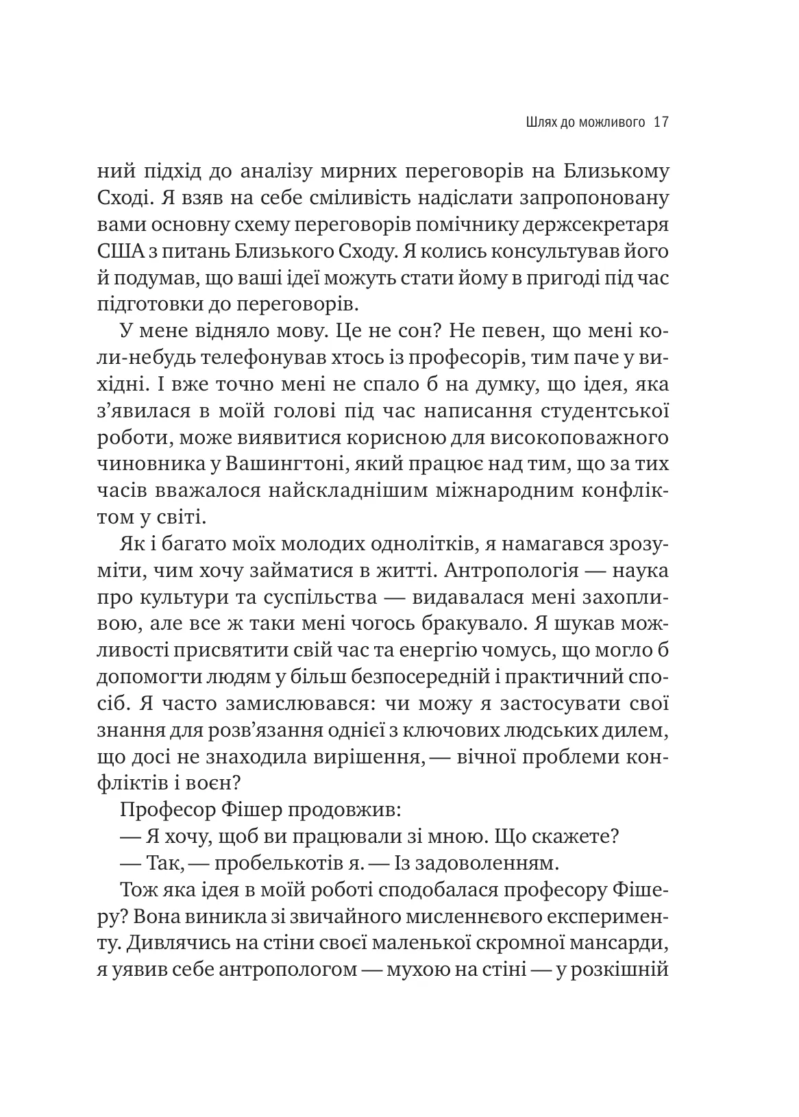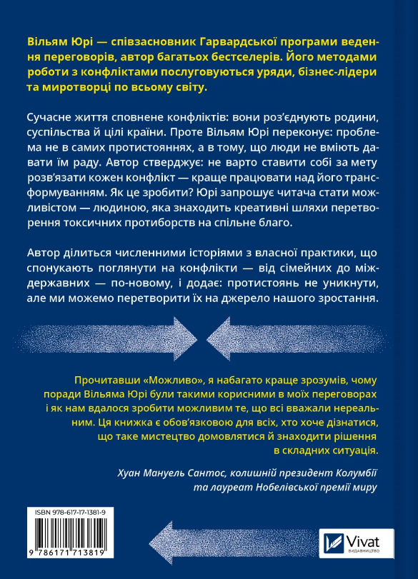 Сучасне життя сповнене конфліктів: вони роз'єднують родини, суспільства й цілі країни. Проте Вільям Юрі переконує: проблема не в самих протистояннях, а в тому, що люди не вміють давати їм раду. Автор стверджує: не варто ставити собі за мету розв'язати кожен конфлікт — краще працювати над його трансформуванням. Як це зробити? Юрі запрошує читача стати можливістом — людиною, яка знаходить креативні шляхи перетворення токсичних протиборств на спільне благо.