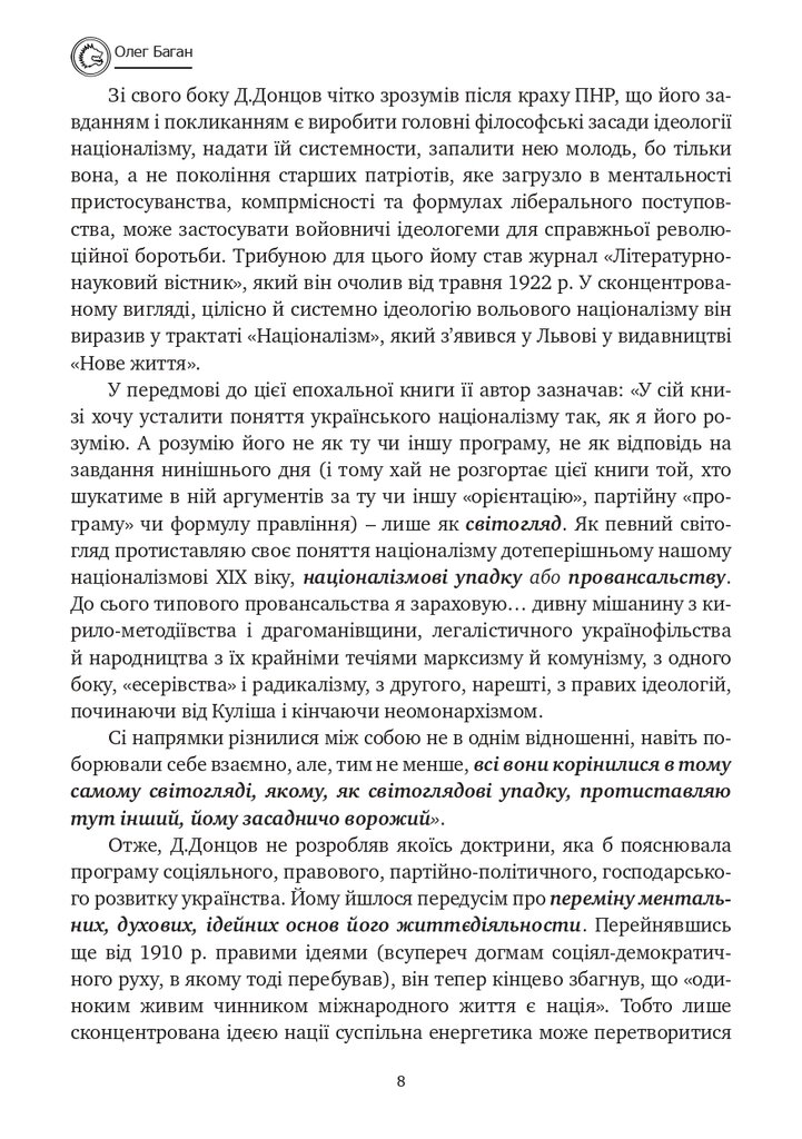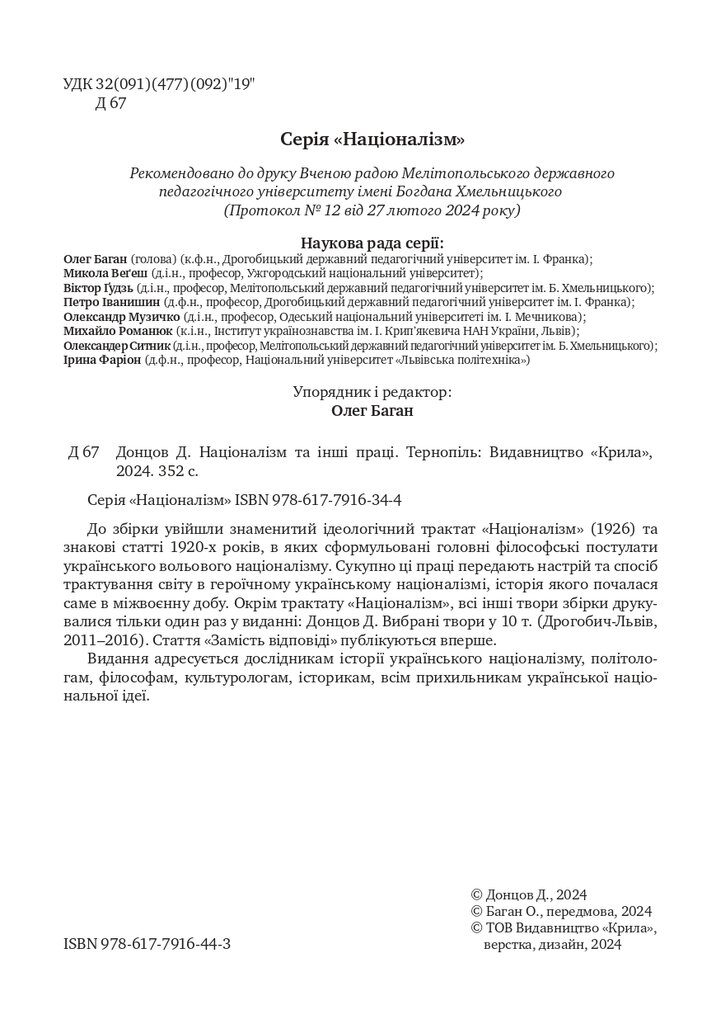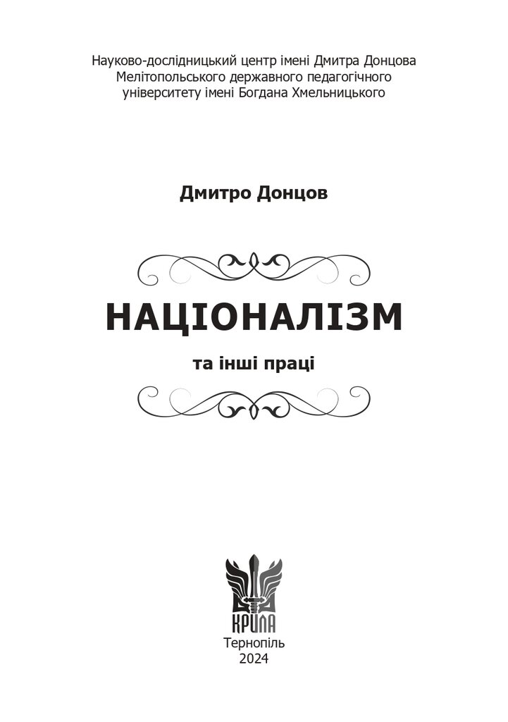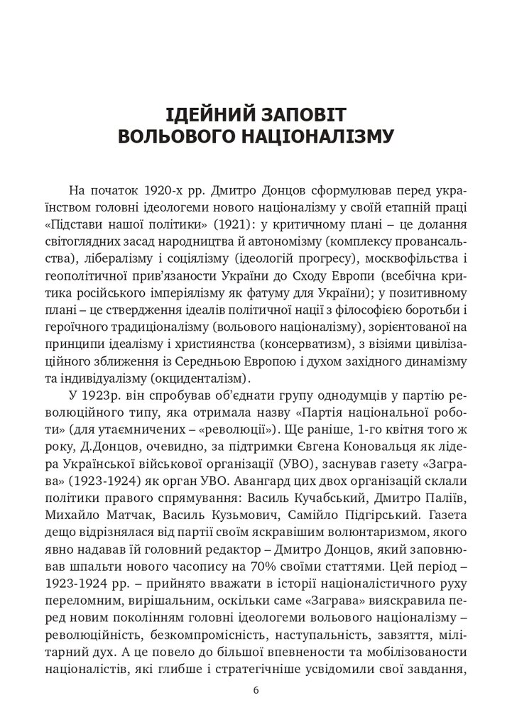 До збірки увійшли знаменитий ідеологічний трактат «Націоналізм» (1926) та знакові статті 1920-х років, в яких сформульовані головні філософські постулати українського вольового націоналізму. Сукупно ці праці передають настрій та спосіб трактування світу в героїчному українському націоналізмі, історія якого почалася саме в міжвоєнну добу. Окрім трактату «Націоналізм», всі інші твори збірки друкувалися тільки один раз у виданні: Донцов Д. Вибрані твори у 10 т. (Дрогобич-Львів, 2011–2016). Стаття «Замість відповіді» публікуються вперше.