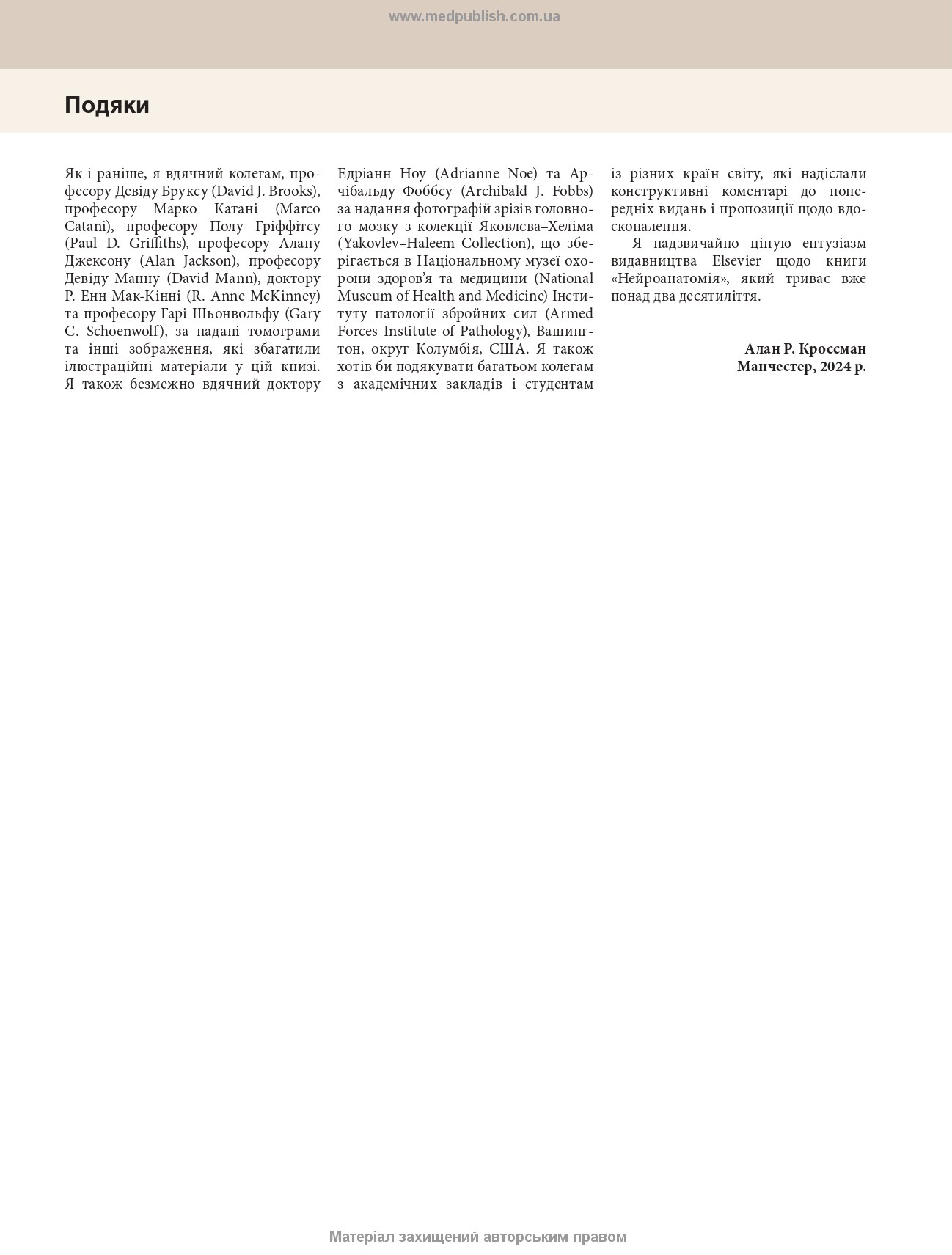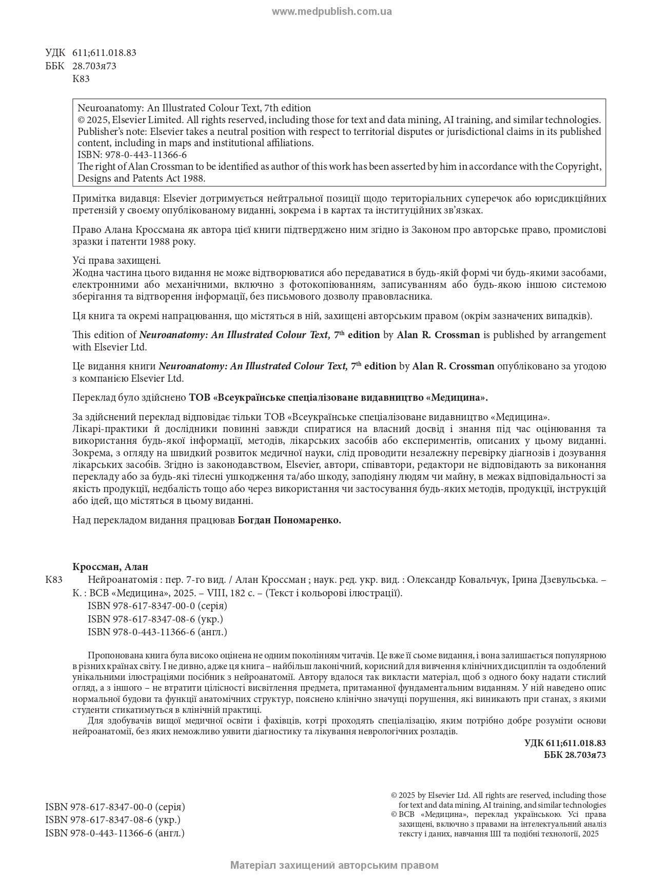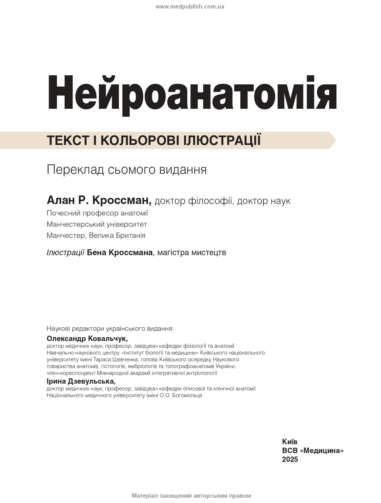 Ця книга полегшить навчання здобувачам вищої медичної освіти і фахівцям, котрі проходять спеціалізацію, яким потрібно добре розуміти основи нейроанатомії, без яких неможливо уявити діагностику та лікування неврологічних розладів.