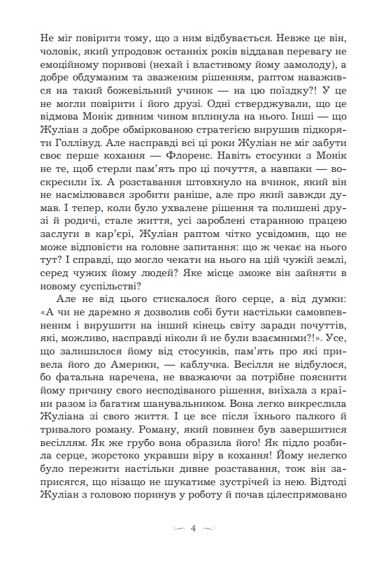 Якою буде їхня зустріч? Що ж відповість йому примхлива красуня? Цей роман перенесе вас на початок ХХ ст. до Франції і на тлі розвитку кінематографа розповість про складні стосунки головних героїв, зраджену дружбу та важкий шлях до досягнення суспільного визнання і мрії. Це історія, в якій гарні маски, упавши, відкривають жахливі обличчя декого з персонажів, а сила їх самолюбства та марнославства виявляється настільки небезпечною, що здатна погубити долі. Але що ж в підсумку переможе: щире кохання чи люта ненависть і помста?