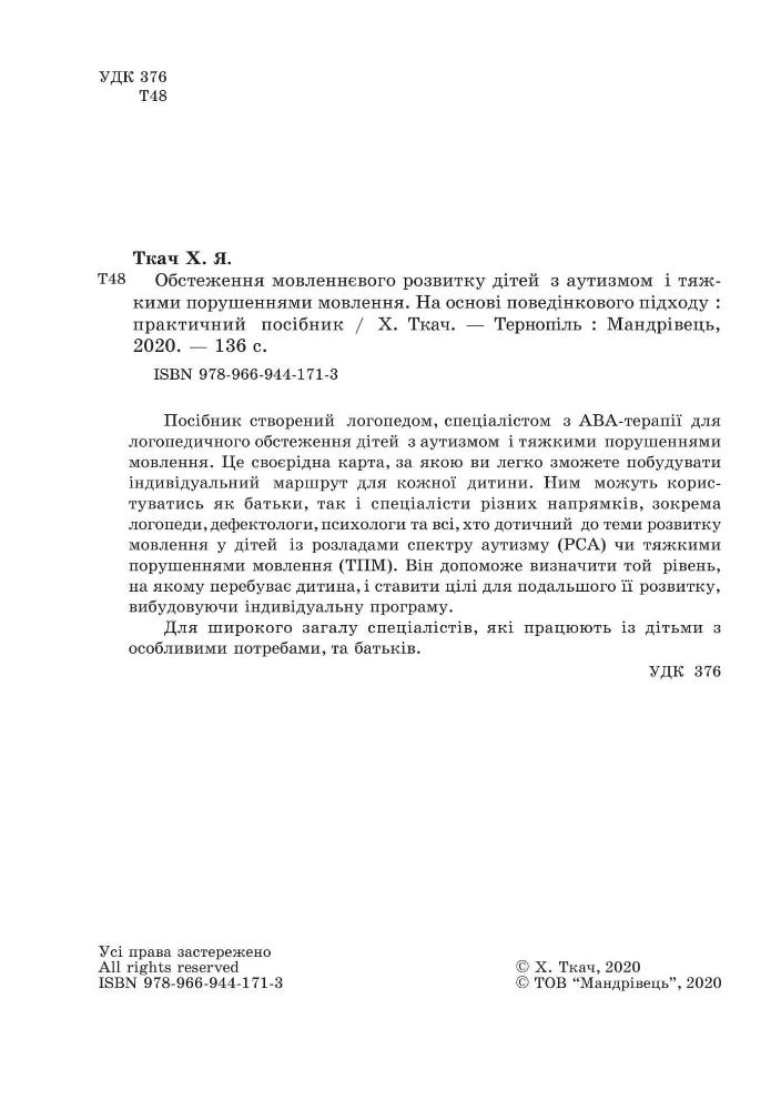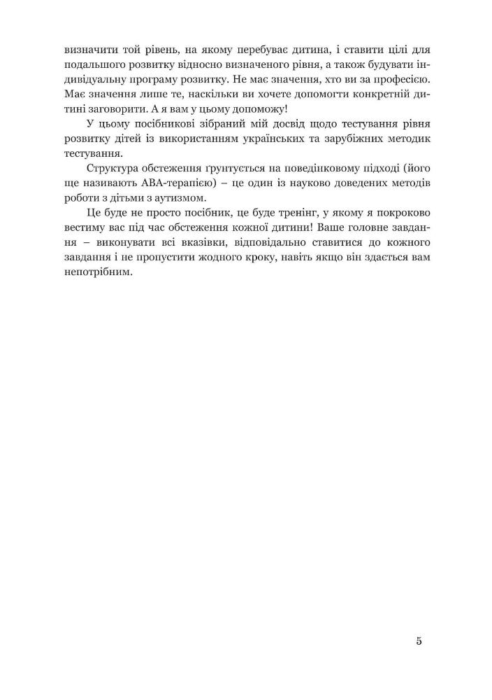 Посібник створений логопедом, спеціалістом з АВА-терапії для логопедичного обстеження дітей з аутизмом і тяжкими порушеннями мовлення.
