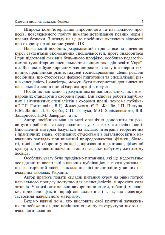 Посібник укладено відповідно до типової програми нормативної дисципліни «Основи охорони праці», затвердженої Міністерством освіти і науки України 31 липня 1997 року, адаптовано до нової редакції Закону України «Про охорону праці», зокрема до змін і доповнень, які були внесені в нього Законом України № 229ІV від 21 листопада 2002 року. Для студентів економічних, педагогічних та гуманітарних спеціальностей вищих навчальних закладів освіти України, а також для широкого загалу інженернотехнічних працівників різних галузей господарювання. Деякі розділи посібника можуть бути використані для вивчення навчальної дисципліни «Охорона праці в галузі».
