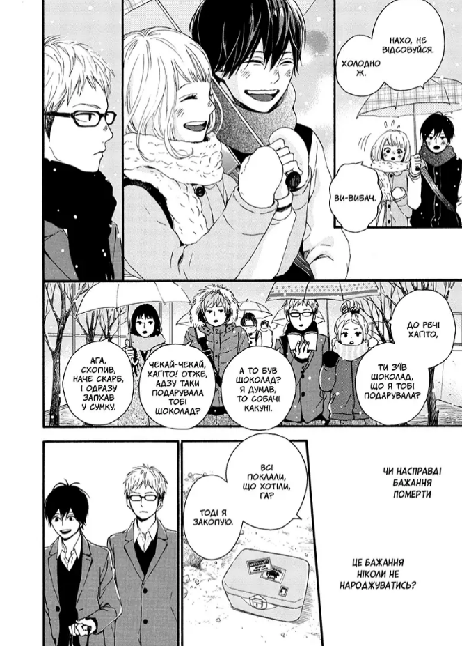 Коли листи з майбутнього отримують Хаґіта, Такако й Адзуса, вони вирішують діяти: зробити життя Какеру світлішим, подарувати сміх, підтримку й тепло, яких йому так бракувало. Разом вони оберігають його від знущань, підштовхують до здійснення маленьких мрій і намагаються повернути віру в себе, при цьому зазираючи глибше в його внутрішній світ.