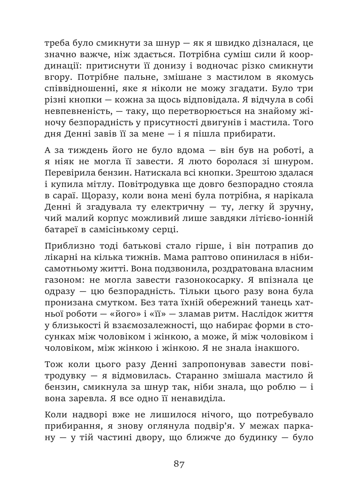 Австралійська письменниця Брук Боланд вміє побачити те, що зазвичай проминає повз, — і висвітлити його з такою увагою й теплотою, що читач починає інакше вдивлятися у власне життя. Низка розповідей про близькість і втрату, про турботу і самотність, про будні, наповнені тишею, спогадами, світлом, плином життя. Вона пише так, що серце трохи стискається — від ніжності, від пізнавання, від чогось неозначено важливого.