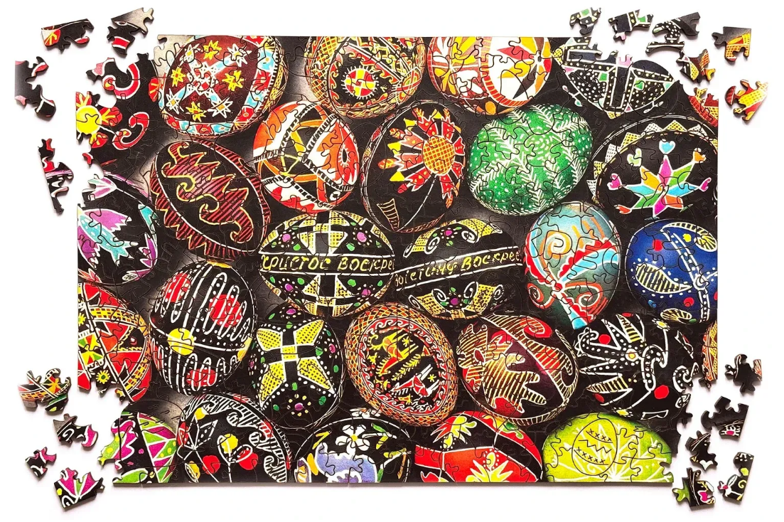 Складання цього пазлу – це не лише приємний процес, а й спосіб уважно розглянути візерунки, особливості різних стилів та орнаментів з різних куточків України. Різноманітні форми елементів, серед яких є великодні символи, роблять процес складання ще більш захопливим.