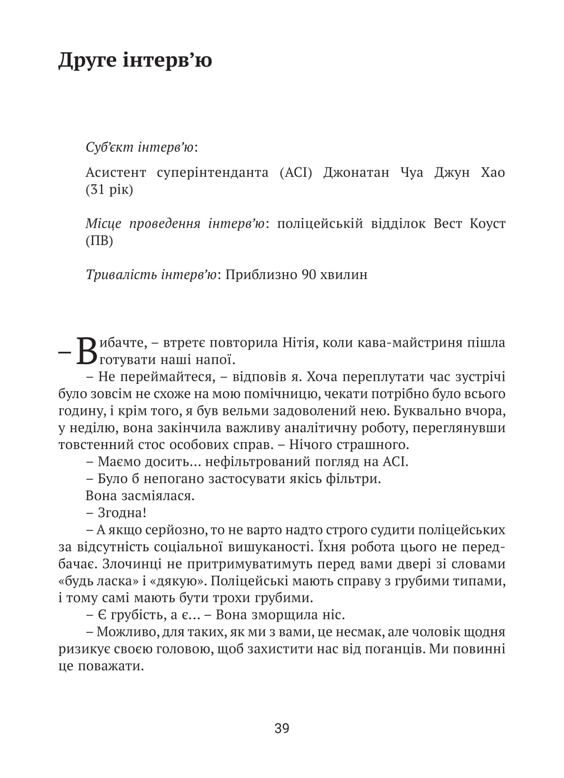 Захоплюючий соціальний детектив «Після слідства» оголює темні сторони сінгапурської бюрократії. Написаний сухою мовою урядового звіту, роман залишає моторошне відчуття втягнення до велетенської, жорстокої та бездушної машини під назвою Держава, яка перемелює людські долі, спотворюючи життя маленької людини.